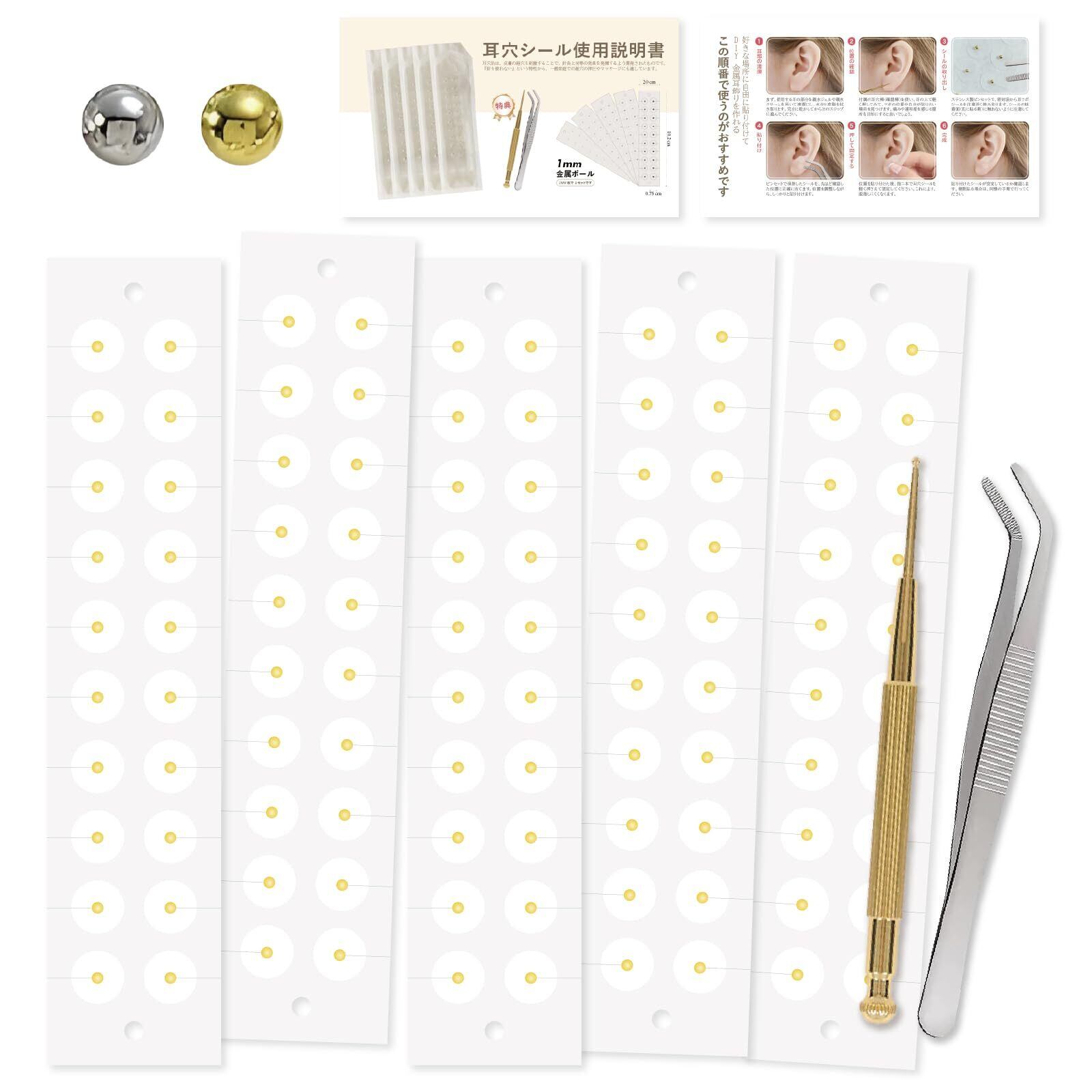 【数量限定】【鏡の女人】耳ツボシール ジュエリー チタン製 100粒セット 超薄0.2mm ピンセット付き 金粒&銀粒 男女兼用 袋包装 [並行輸入品]