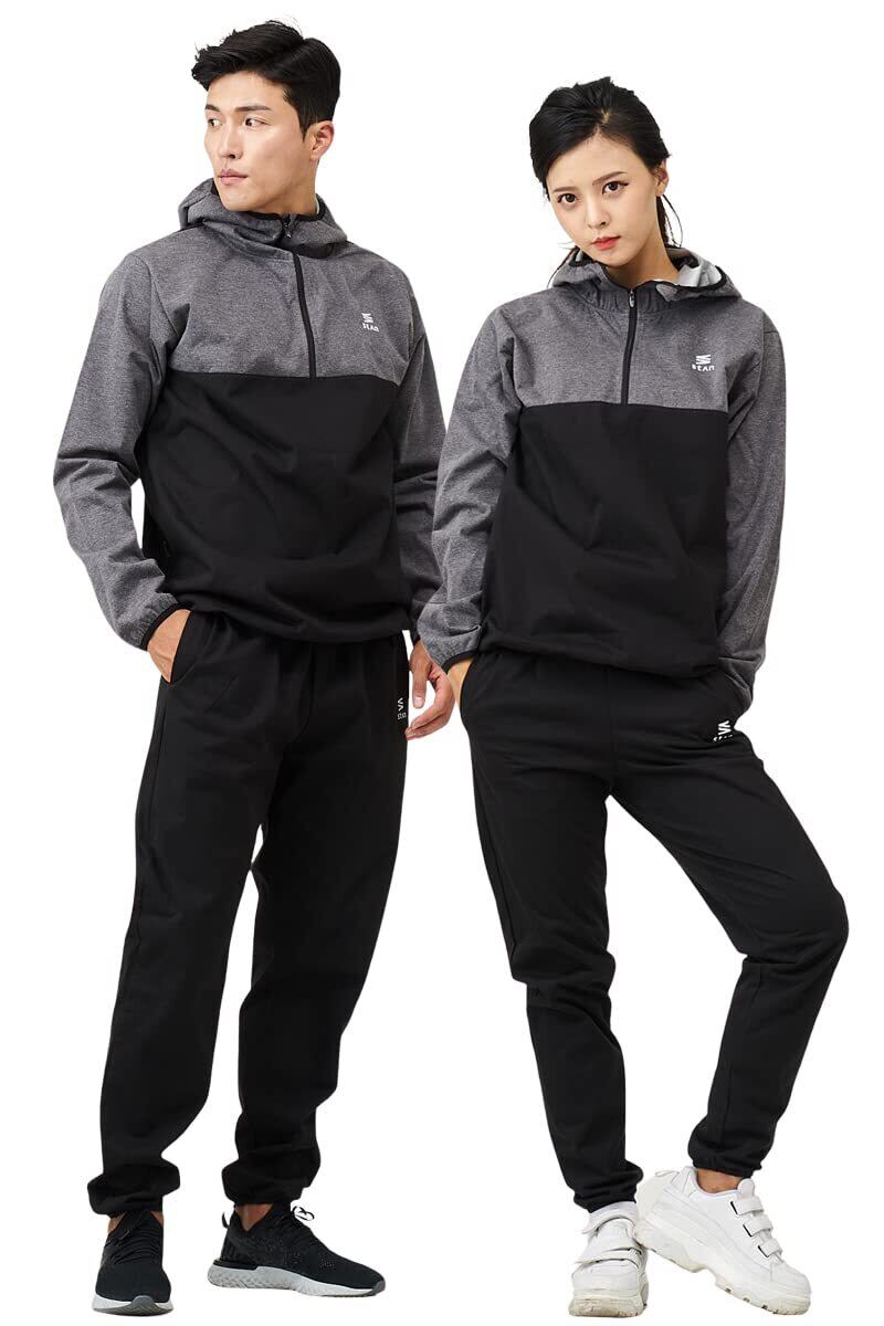 [StAn] 朝倉未来選手着用 サウナスーツ 首から胸までのフロントジップ 上下セット 洗濯可 男女兼用 大きいサイズ ウインドブレーカー [プルオーバー]