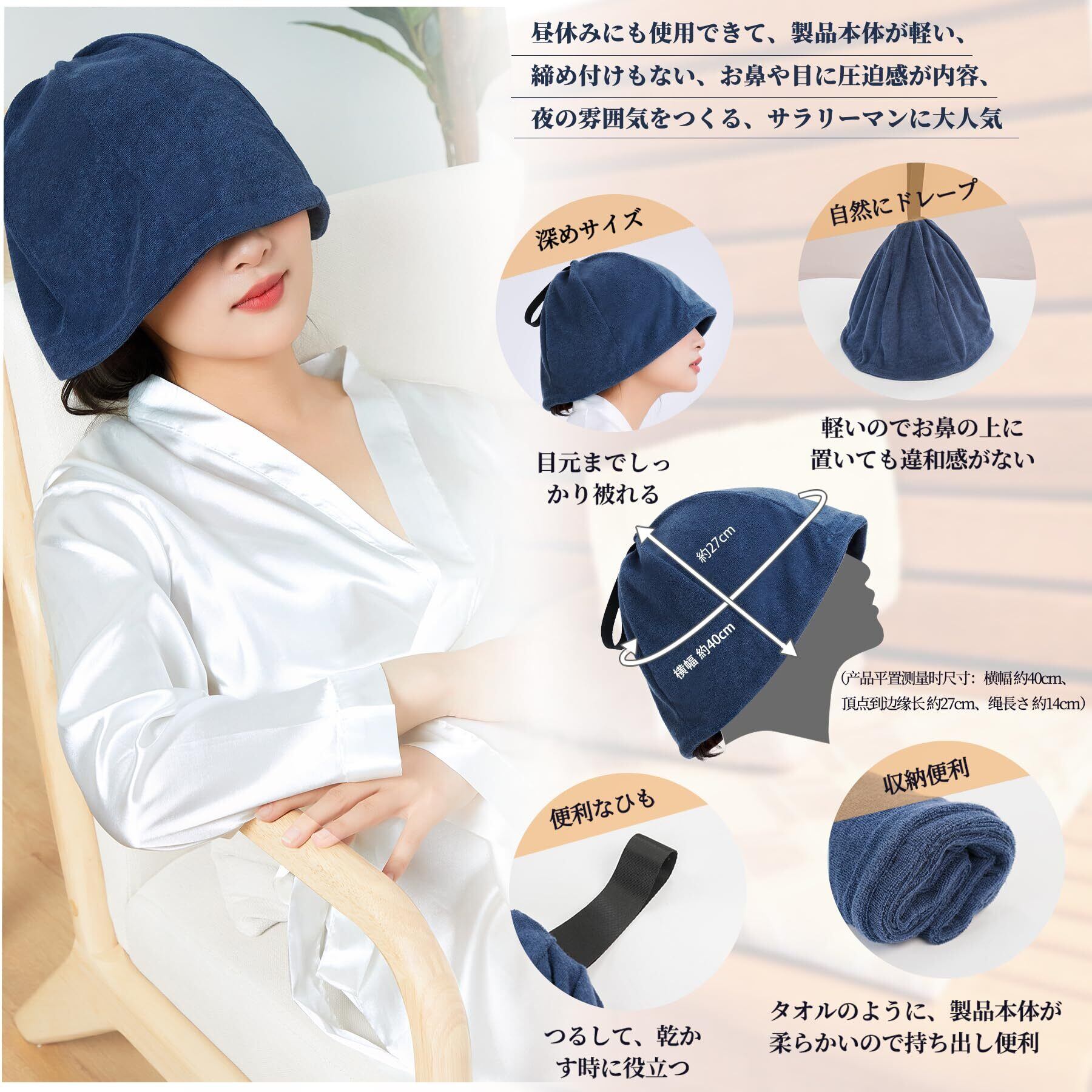 【髪の乾燥を防ぐ】すっぽり被ってゆとりがあるデザインで、髪の乾燥から守ってくれるマストアイテムです。サウナの翌日も頭がかゆくなる心配はありません。