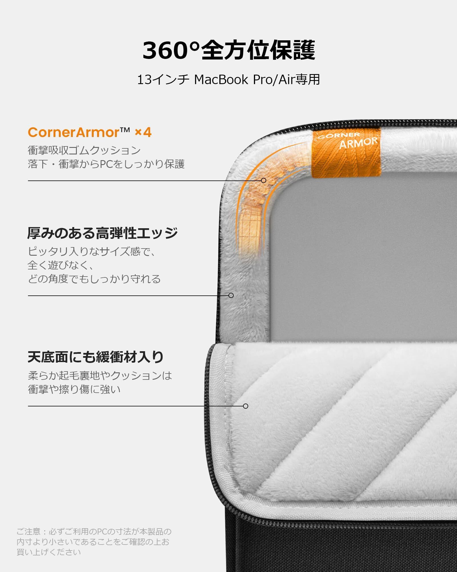 tomtoc 360°保護 パソコンケース 13インチ MacBook Air M4/M3/M2/M1 2025-2018 / 13インチ MacBook Pro M2/M1 2024-2016 対応 全方位耐衝撃 ノートパソコン ケース 13.3インチ PCケース スリーブ インナーバッグ 軽量 撥水加工 ブラック