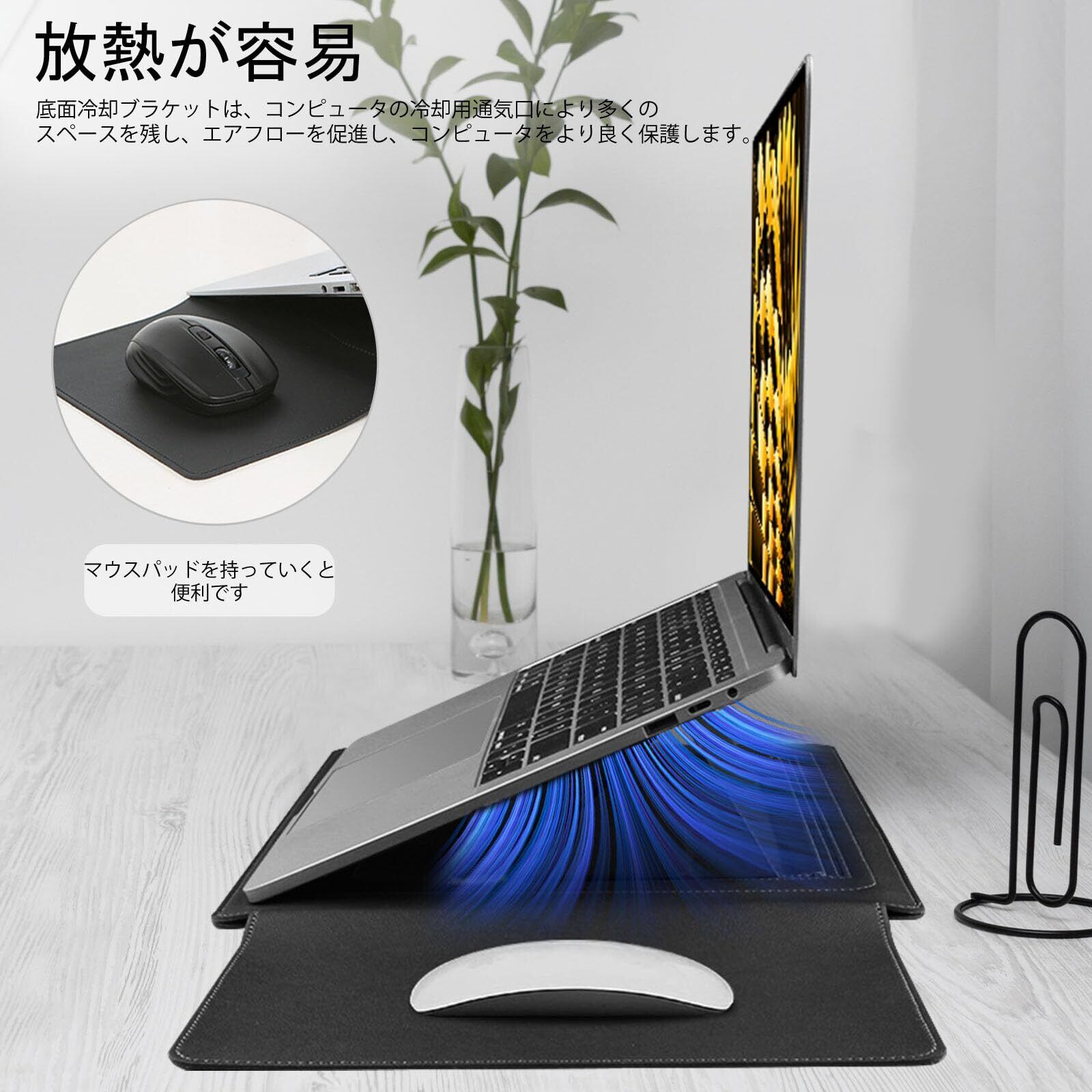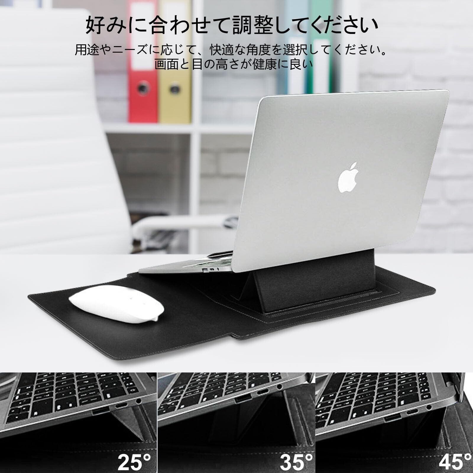 【3in1】ノートパソコン用スリーブ pcスタンドとマウスパッド付き MacBook Air Pro iPad Apple/Surface Lenovo HP 12/13/13.3/14/15.6/16インチ Laptop 対応 薄型 PU革パソコンスリーブ ノートPCインナーバッグ 耐衝撃 キズ 防止 撥水加工 全面保護 電源収納ポーチ付き(13.3-14インチ | ブラック)