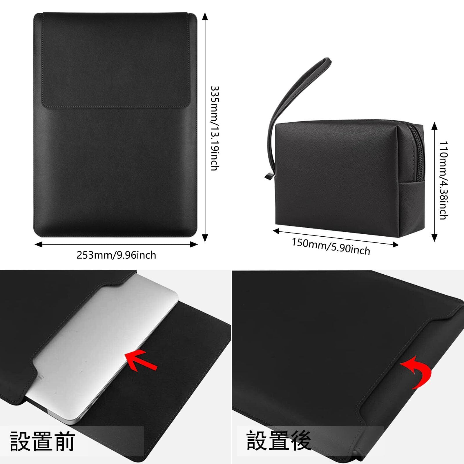 【新春セール】【3in1】ノートパソコン用スリーブ pcスタンドとマウスパッド付き MacBook Air Pro iPad Apple/Surface Lenovo HP 12/13/13.3/14/15.6/16インチ Laptop 対応 薄型 PU革パソコンスリーブ ノートPCインナーバッグ 耐衝撃 キズ 防止 撥水加工 全面保護 電源収納ポーチ付き(13.3-14インチ | ブラック)