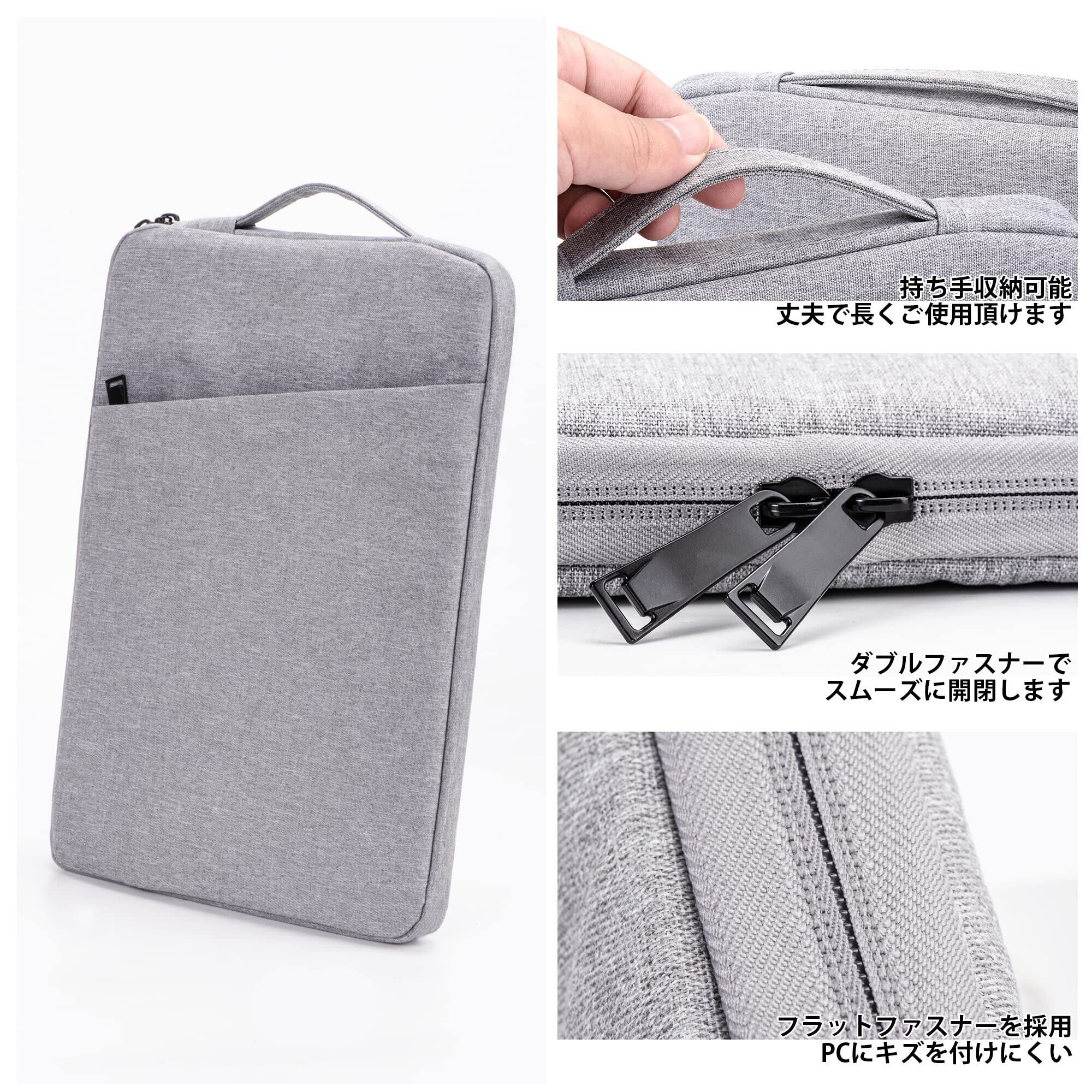 〈こだわりの設計〉①表面防水ポリエステル加工を施していますので、PCまで水分が染み込むのを防ぎ、雨の日でも安心です。一方、外側には埃、シワや傷などがつけにくいように工夫されています。②持ち手は収納可能で必要な時以外は邪魔になりません。③ダブルファスナー採用で、開口部も大きく開いて、タブレットの出し入れがスムーズです。男女問わず幅広い年齢層でご使用いただけます。