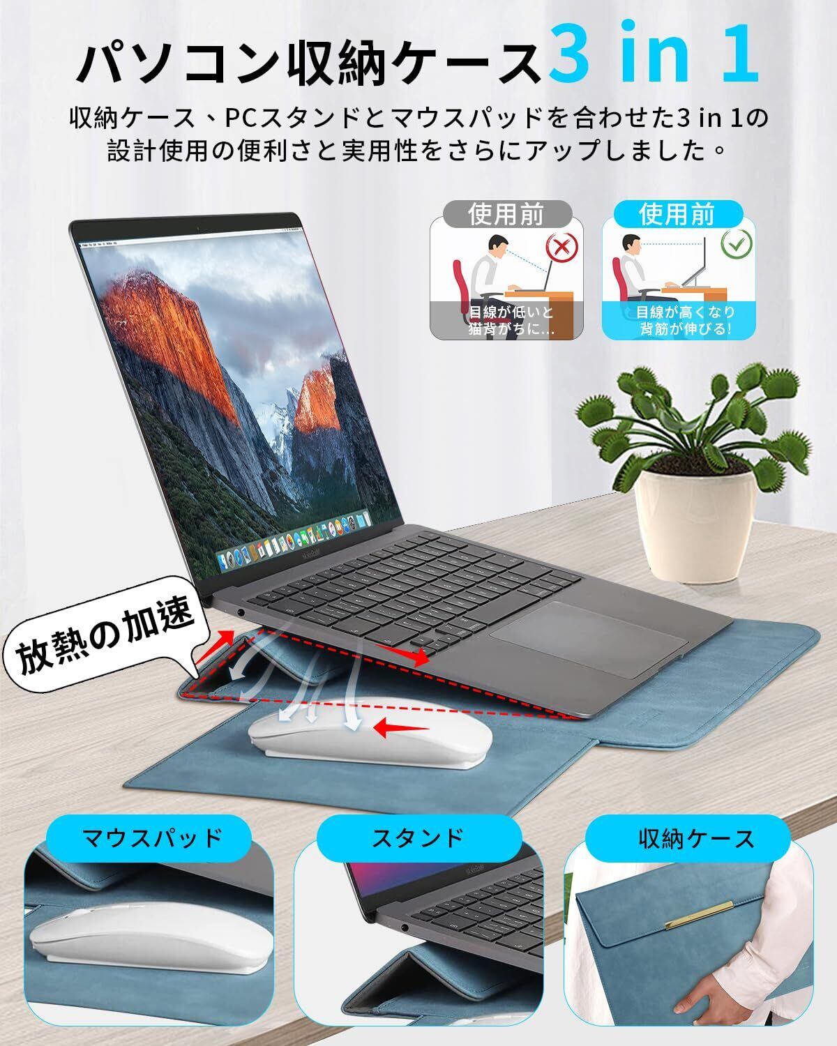 【人気商品】TOWOOZ MacBook Air/Pro ケース 13-14 インチ M2/M1 薄型 耐衝撃 撥水スリーブケース 防傷 キズ 汚れ 防止 適応 マウスマット/電源収納ポーチ付き