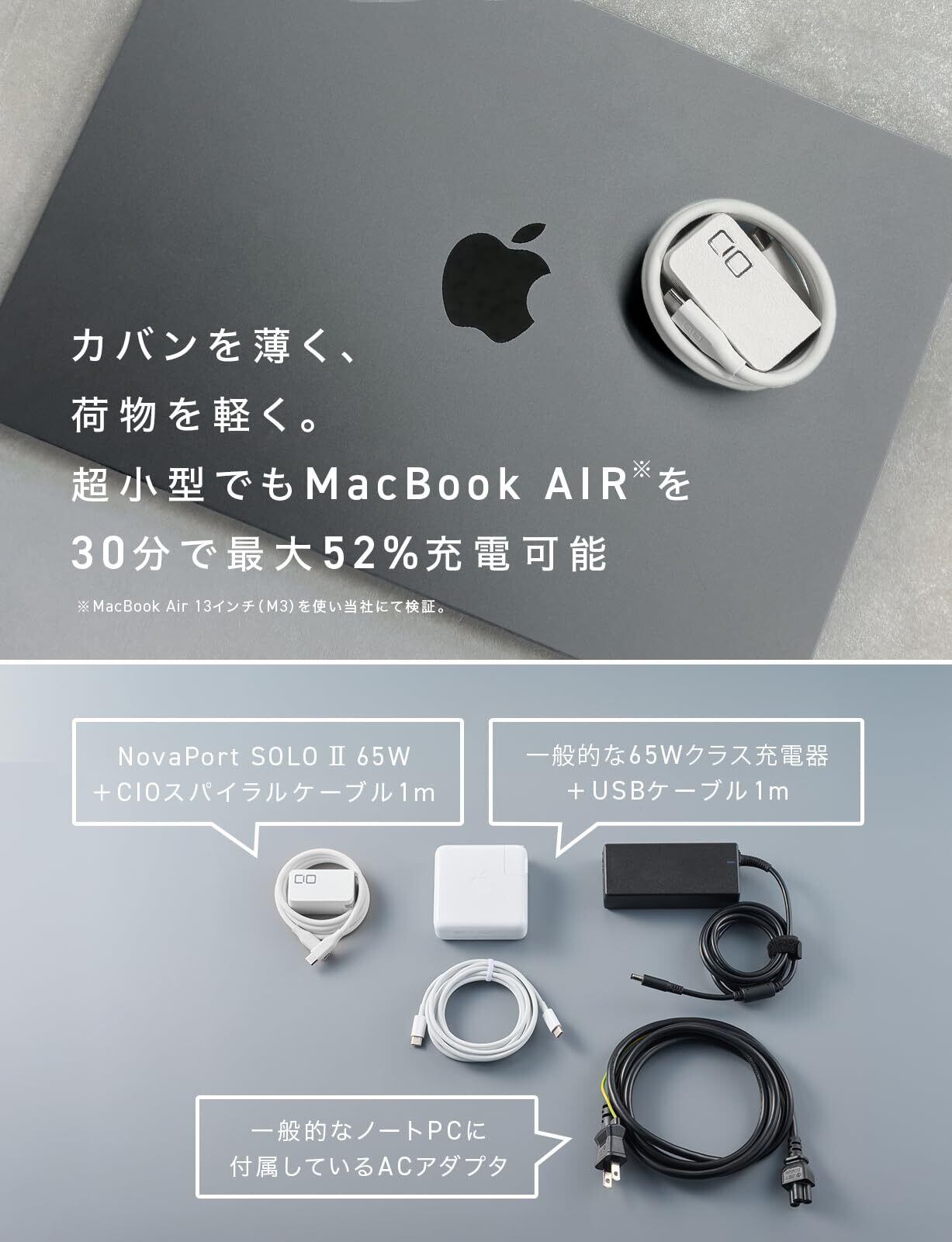 CIO NovaPort SOLOⅡ 65W USB-C急速充電器【世界最小級 / NovaSafety2.0搭載・動作時 最大55W】単ポート PD対応 ACアダプター ノートPC/iPhone 17 / Air / 16 / 15 / Android/MacBook/iPad向け (ホワイト)
