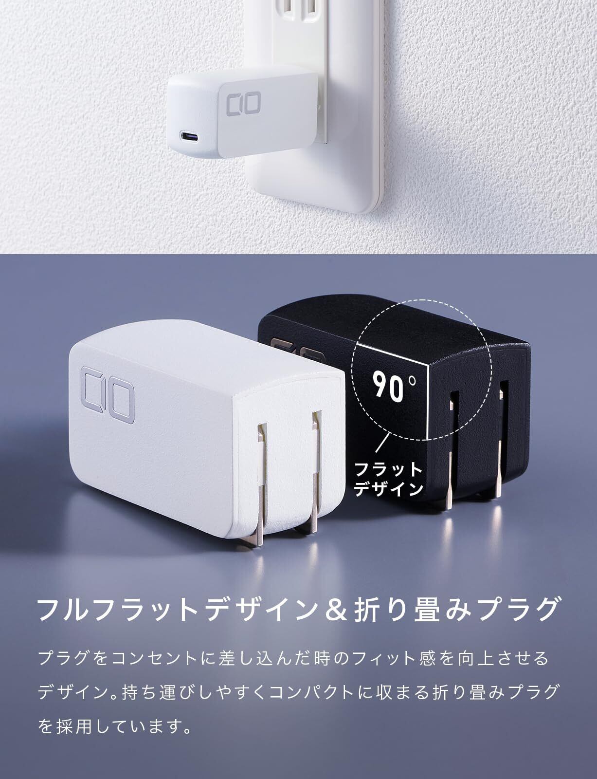 【従来の充電器の常識を覆す小ささ】65W高出力の急速充電器とは思えないほどの、圧倒的コンパクトサイズ。片手にすっぽり収まり、持ち運び時はガジェットポーチはもちろん、カバンの小さなポケットにも難なく収まります。折り畳みプラグ式だから安全に持ち運べ、使用時もコンセント干渉がなく、コンセント周りをスッキリすることができます。オフィスでご使用になる際もかさばらず、デスク周りをスッキリとお使いいただけます。