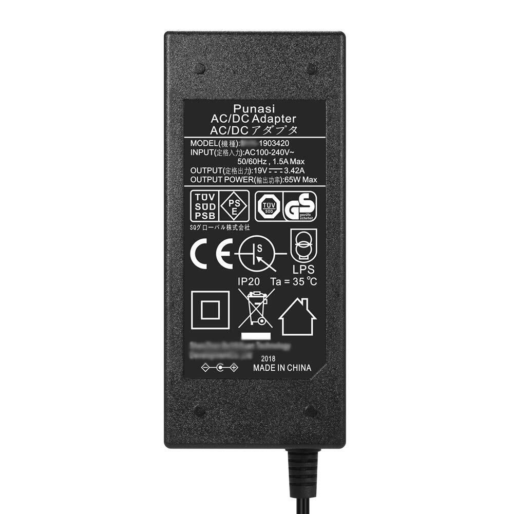 Punasi PSE認証 LG用のAC/DCアダプター 19V 3.42A 65W プラグのサイズ:6.5*4.4mm センター ブラス(+)19V 3.42A 65W 19/20/22/23/24/27インチモニター対応 互換ACアダプター HDTV交換用電源 チャージャー用ACアダプター 27GL850-B 22MP48HQ-P 27UK650W lgモニター交換のアダプター