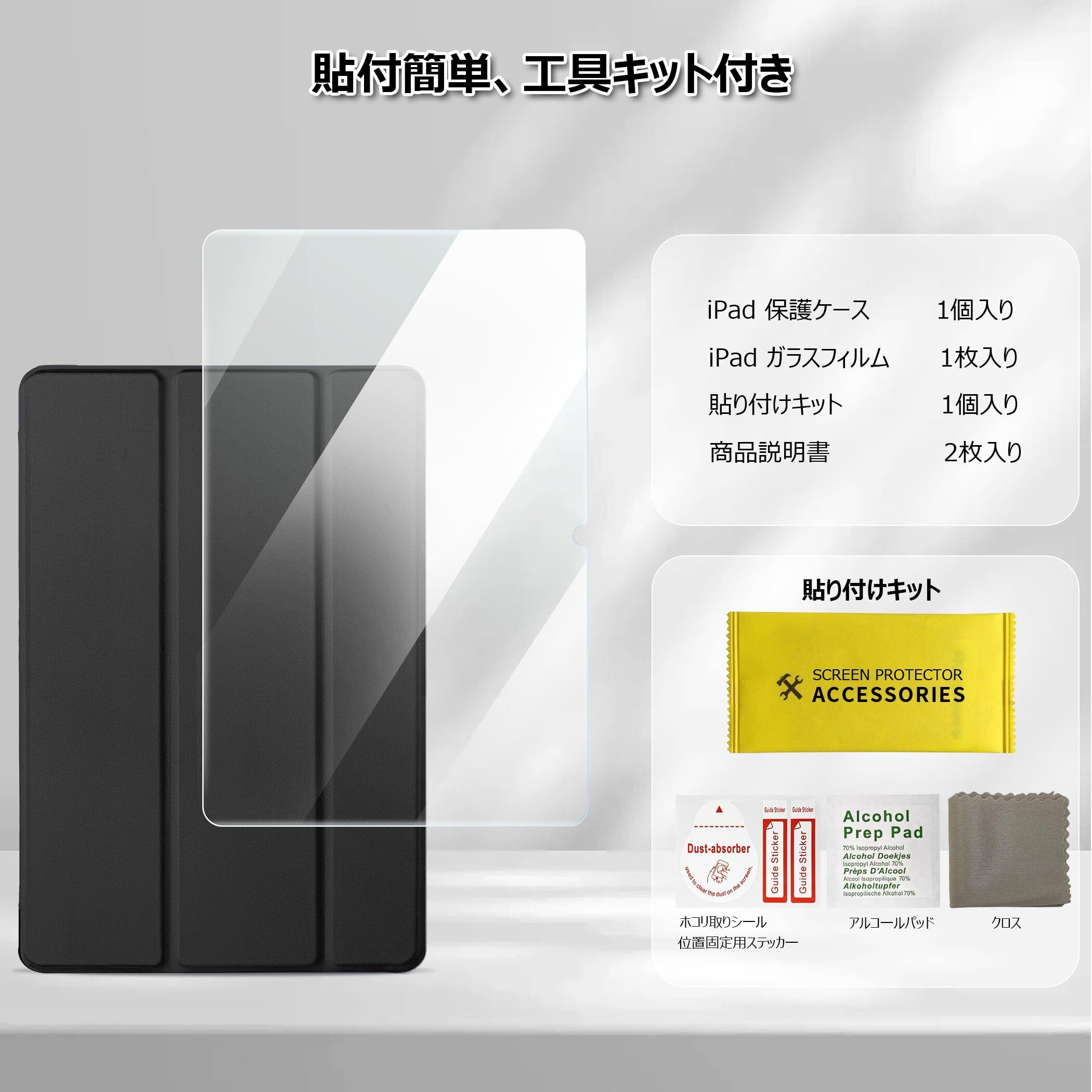 [Redmi Pad 2 ケース ガラスフィルム セット]CACOE Redmi Pad2 11インチ 2025用 ハードケース オートスリープ 三つ折り 耐衝撃 軽量 xiaomi タブレット カバー ブラック
