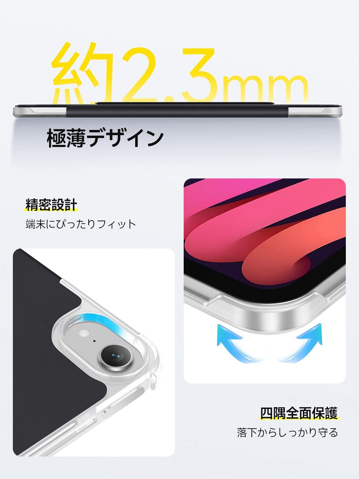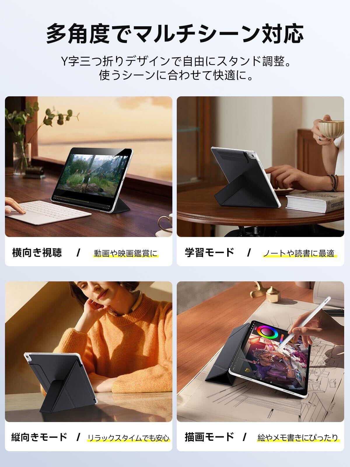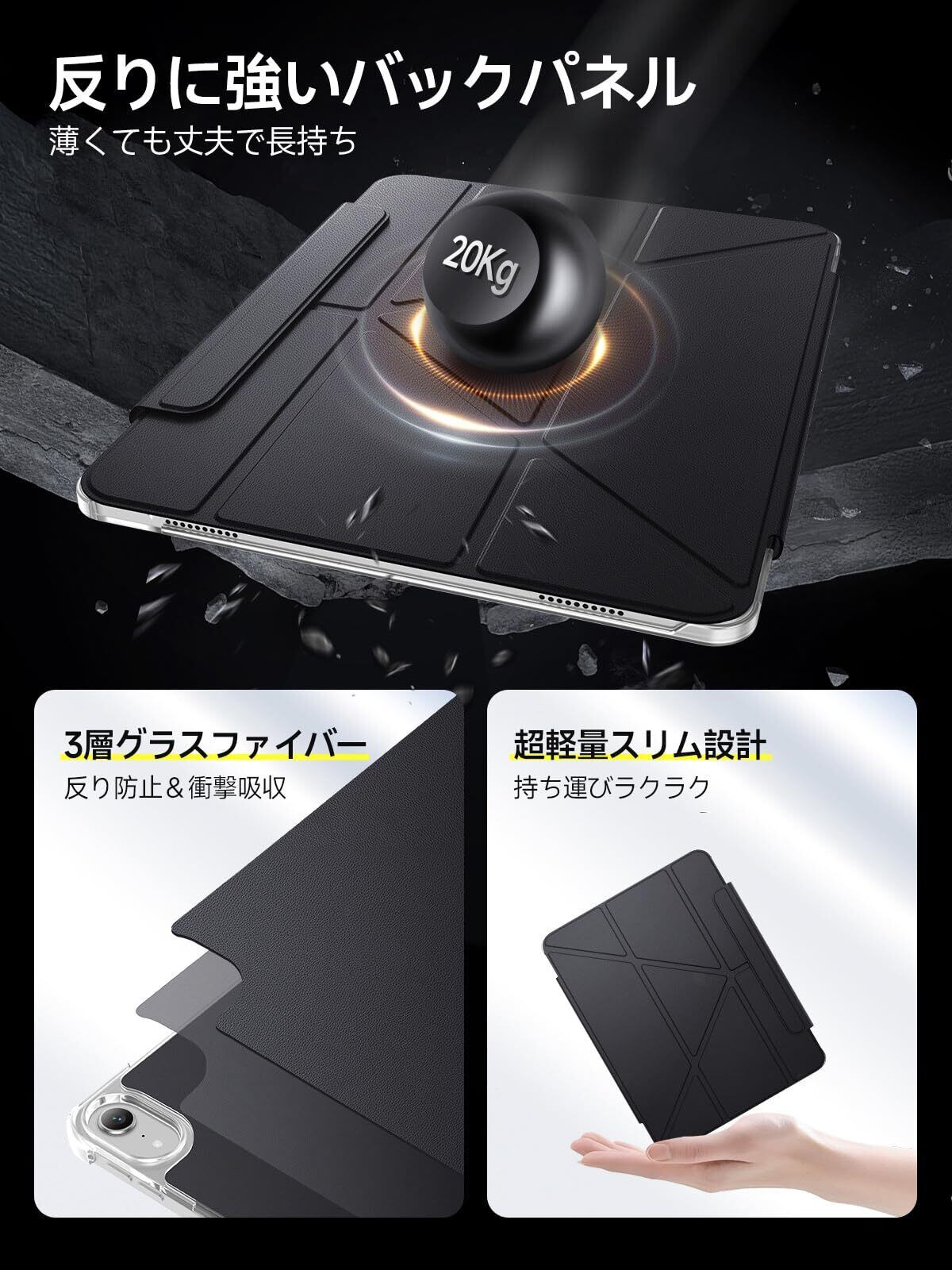 【磁気吸着&360°全面保護】 背面に強力マグネットを内蔵し、ケースが本体にしっかり密着。カバーの開閉で自動スリープ/ウェイクに対応。四隅強化に加え、360°全周を包み込むフルカバー設計で、落下衝撃、摩擦、埃や指紋からもしっかり守ります。