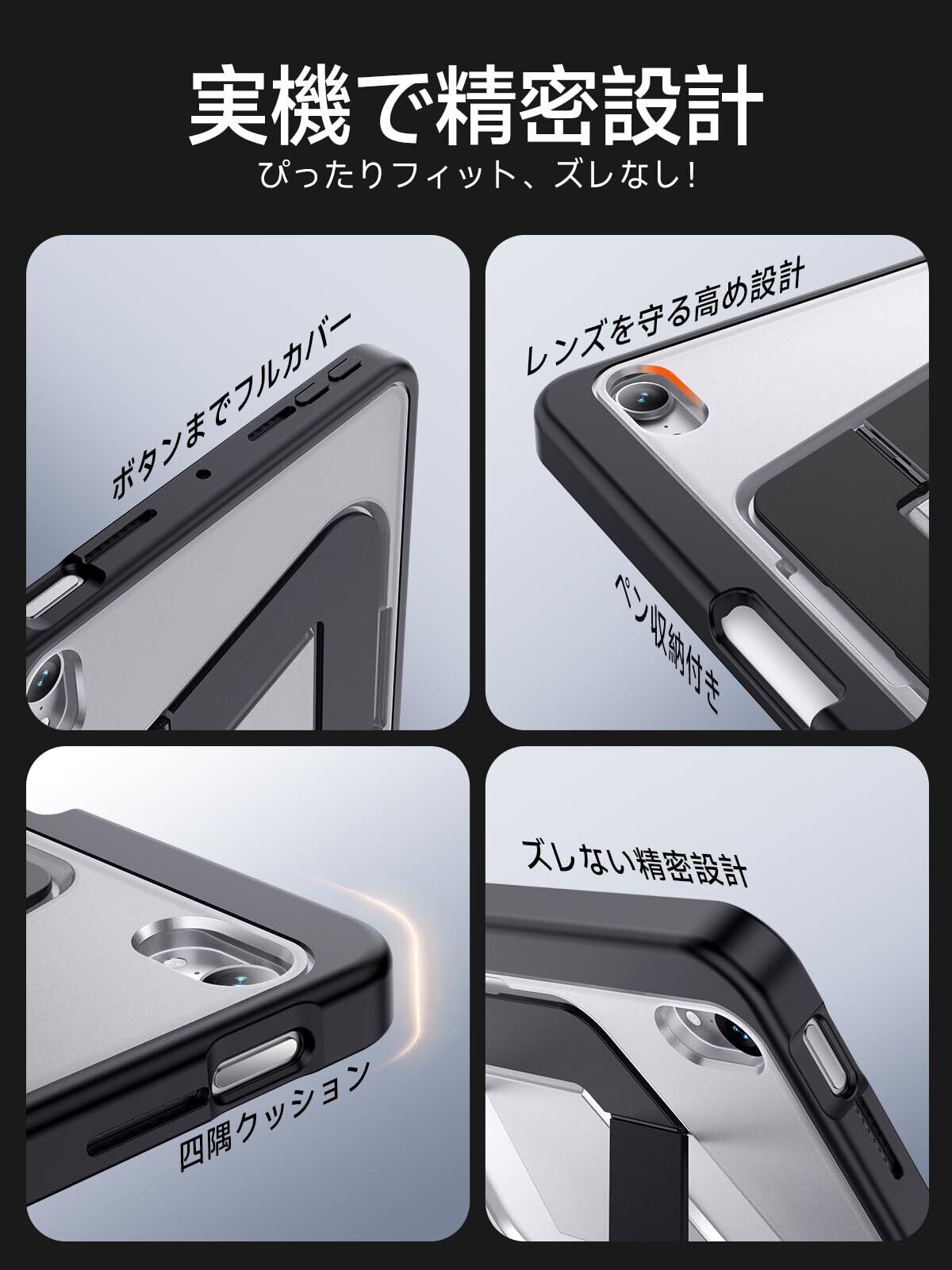 【新着商品】【米軍MIL規格・縦置き/横置きスタンド】iPad mini7 ケース(A17 Pro 2024対応)iPad mini 第7世代/第6世代(2024/2021モデル)専用 アルミ調節式 縦横スタンド ペンシルホルダー付き 薄型 軽量 耐衝撃 半透明カバー (ブラック)