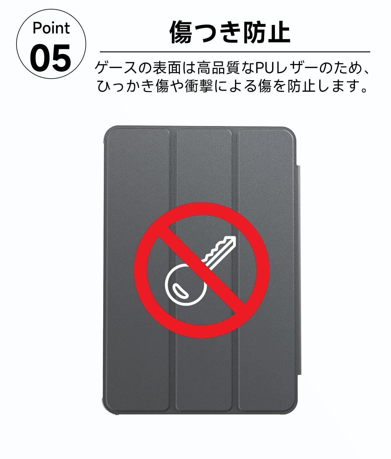 【優しく、しっかり保護】 ケースの表面は高品質なPUレザーのため、電源、ボタン部分もしっかり保護し、ひっかき傷や衝撃による傷を防止します。
