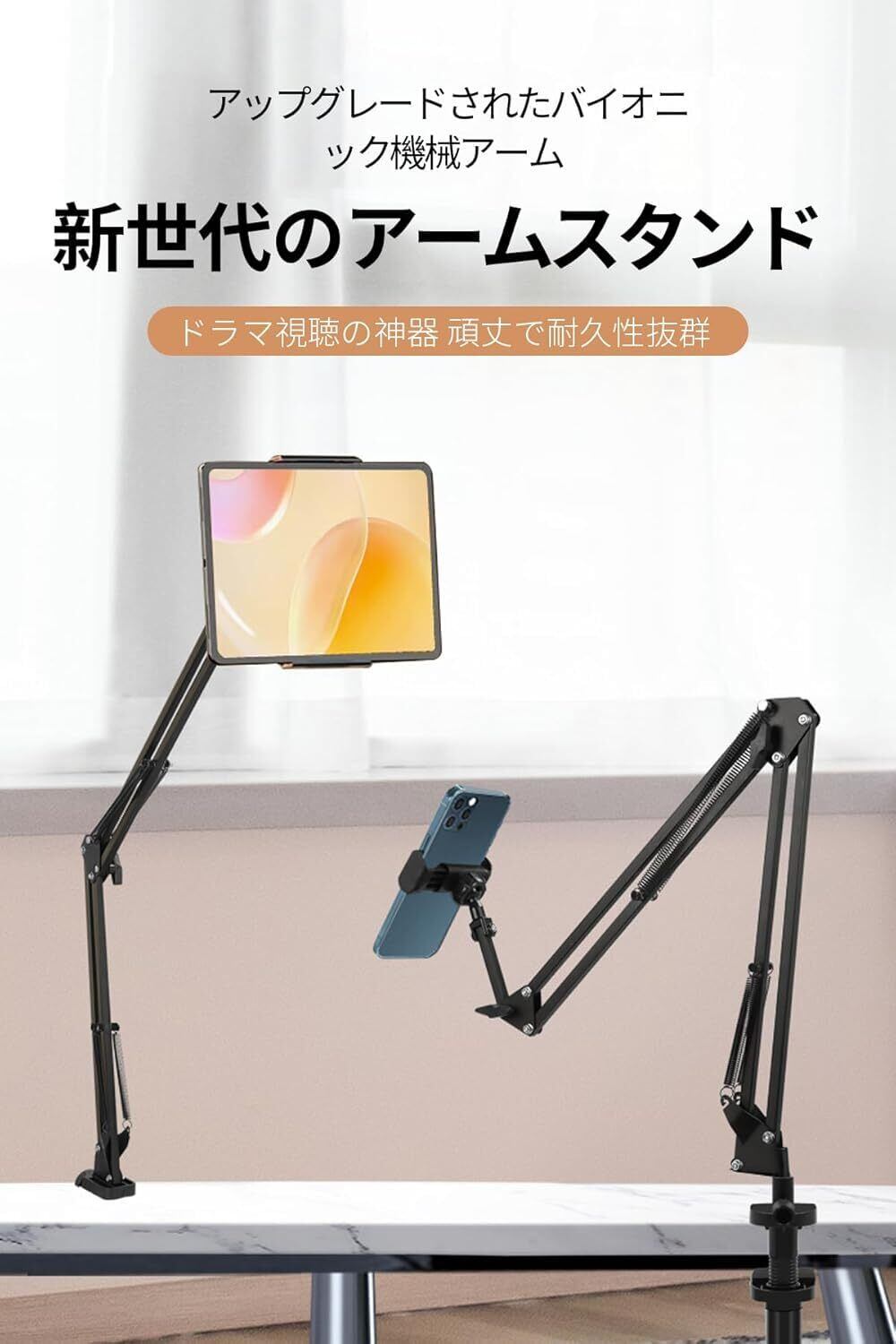 【バイオニックデザインによる性能アップ】当社のタブレットスタンドは、先端技術を駆使したバイオニックカンチレバー構造を採用し、伝統的な機械式カンチレバーを一変させ、画期的なアップグレードを実現しています。丁寧に設計されたタブレットスタンドのカンチレバーは、タブレットの使用シーンにピタリとフィットし、タブレットデバイス専用に作られており、タブレットスタンドの使い勝手を格段に向上させています。特に、くつろぎながらスマートフォンやタブレットを置いて楽しむ際に、長時間手持ちによる腕や肩の疲労を効果的に解消し、新たな快適なメディア鑑賞体験をもたらし、タブレットスタンドがユーザーにとっての便利なパートナーとなります。