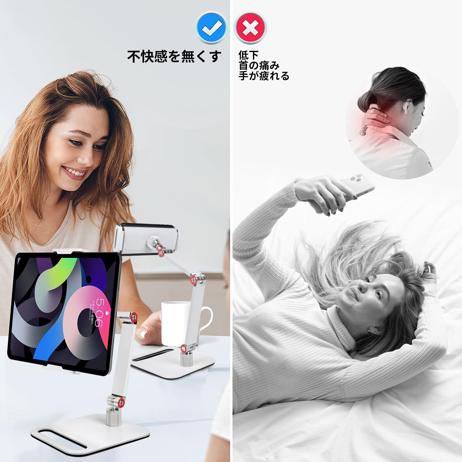【特価商品】タブレットスタンド スマホスタンド 2024最新型 安定で必ず揺れない iPadスタンド PCスタンド 卓上 アーム ベッド用 4.7〜15.6インチ 360回転 横/縱/仰向け 床置き 折り畳み固定アーム iPad Pro Mini Air iPhone Switch Kindle多機種対応 角度調整可能 高さ調整可能 デスク ベッド 日本語取扱説明書 ホワイト