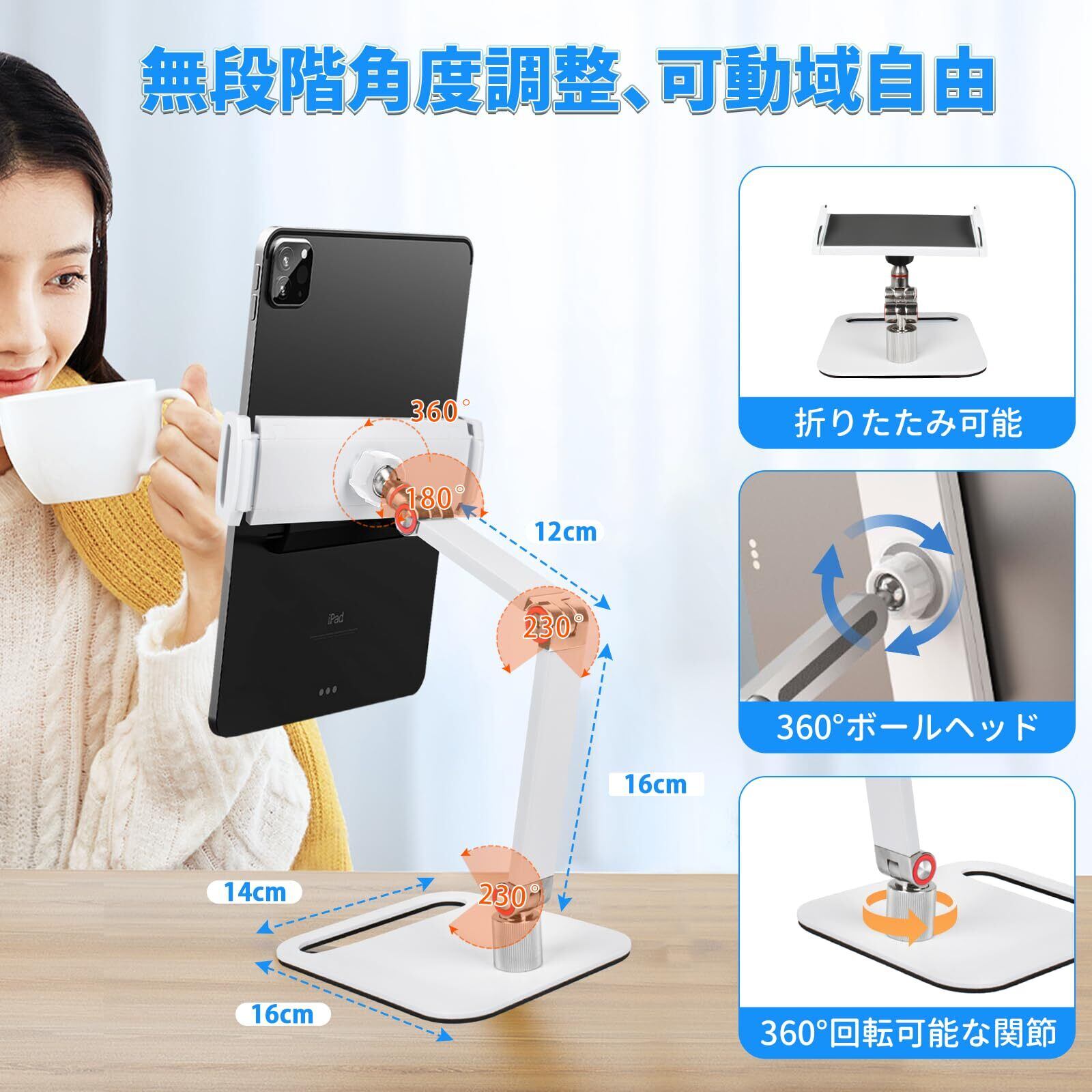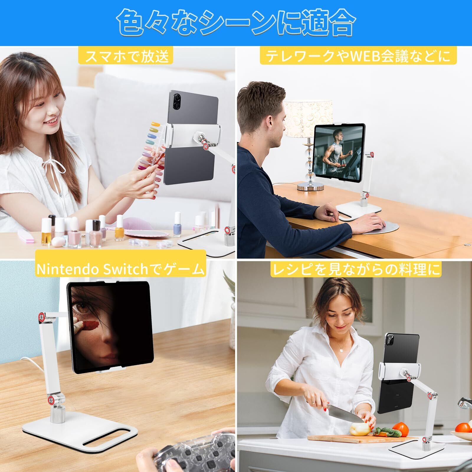 タブレットスタンド スマホスタンド 2024最新型 安定で必ず揺れない iPadスタンド PCスタンド 卓上 アーム ベッド用 4.7〜15.6インチ 360回転 横/縱/仰向け 床置き 折り畳み固定アーム iPad Pro Mini Air iPhone Switch Kindle多機種対応 角度調整可能 高さ調整可能 デスク ベッド 日本語取扱説明書 ホワイト