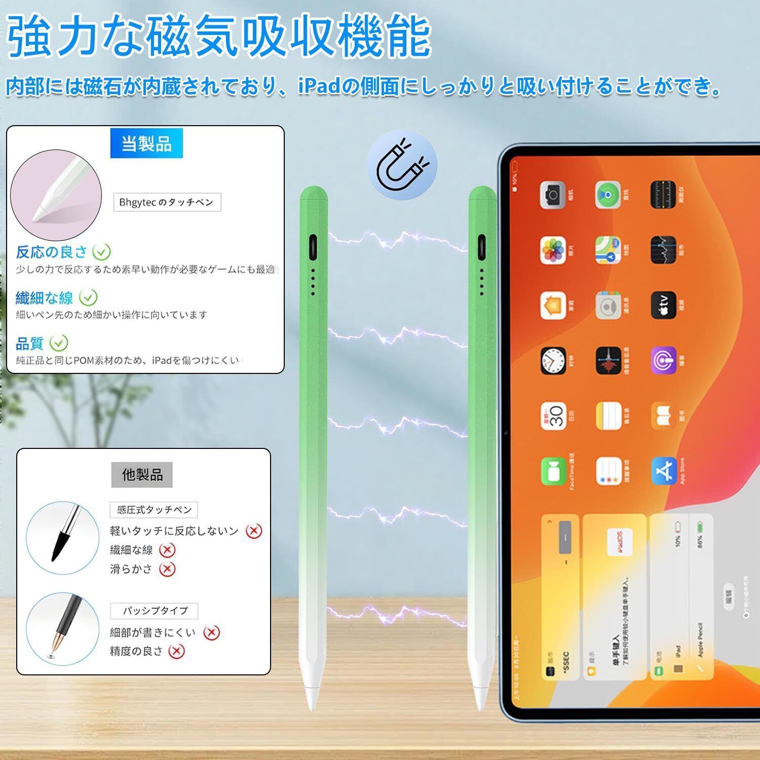 タッチペン 【i-Pad用ペン急速充電】 2025業界新登場 スタイラスペン 超高精度 極細 i-Pad専用 pencil 互換ペン 誤ON/OFF防止/電量表示/磁気吸着/パ-ムリジ エクショ 軽量 耐摩 2018年以降iPad/Pro/air/mini対応USB充電式[日本語取扱说明書付き」(グリーン)