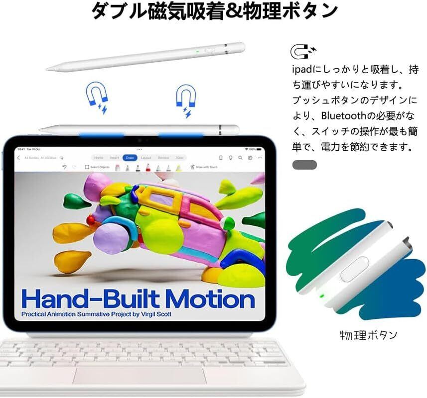 【KIROSA ipadから充電可能】アップルペンシル 第1世代 ipad用 タッチペン あいぱっと ペンシル ペン 電量表示 スタイラスペン 傾き感知/磁気吸着/誤作動防止 2018年以降アイパッド/mini/Air/Pro対応 ホワイト K17