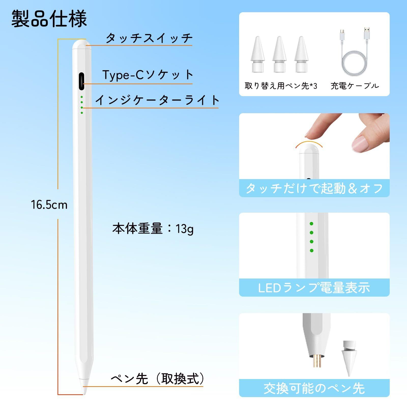 【在庫処分】タッチペン iPad用 ペンシル アップルペンシル代用ペン【傾き感知・磁気吸着・パームリジェクション】20分急速充電 2018年~2025年 超高精度 1.5mm極細 高感度 スタイラスペン ペンシル タッチペン 2018年以降iPad/Pro/Air/mini対応 交換ペン先3個入り (電量表示ライト)