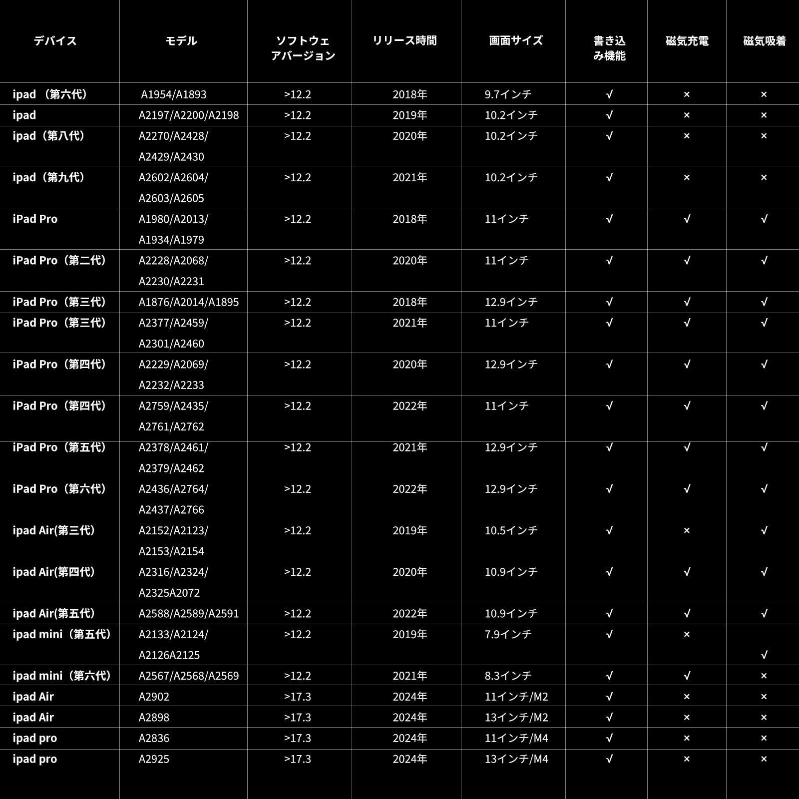 【対応機種】 ご注意:本製品はiPad Air6/7,iPad Pro 2024/2025,iPad mini7など2024年以降新型iPadのMagSafe充電には対応しません。ご購入前、iPadのモデルをご確認ください。万が一使用中にご不明点がありましたら、お問い合わせください。UGREEN iPad Pencil第2世代互換スタイラスペンは、Apple iPad Air (第4、第5世代) 、iPad Pro 12.9インチ(第3、第4、第5、第6世代)、iPad Pro 11インチ(第1、第2、第3、第4世代) に適しています。
