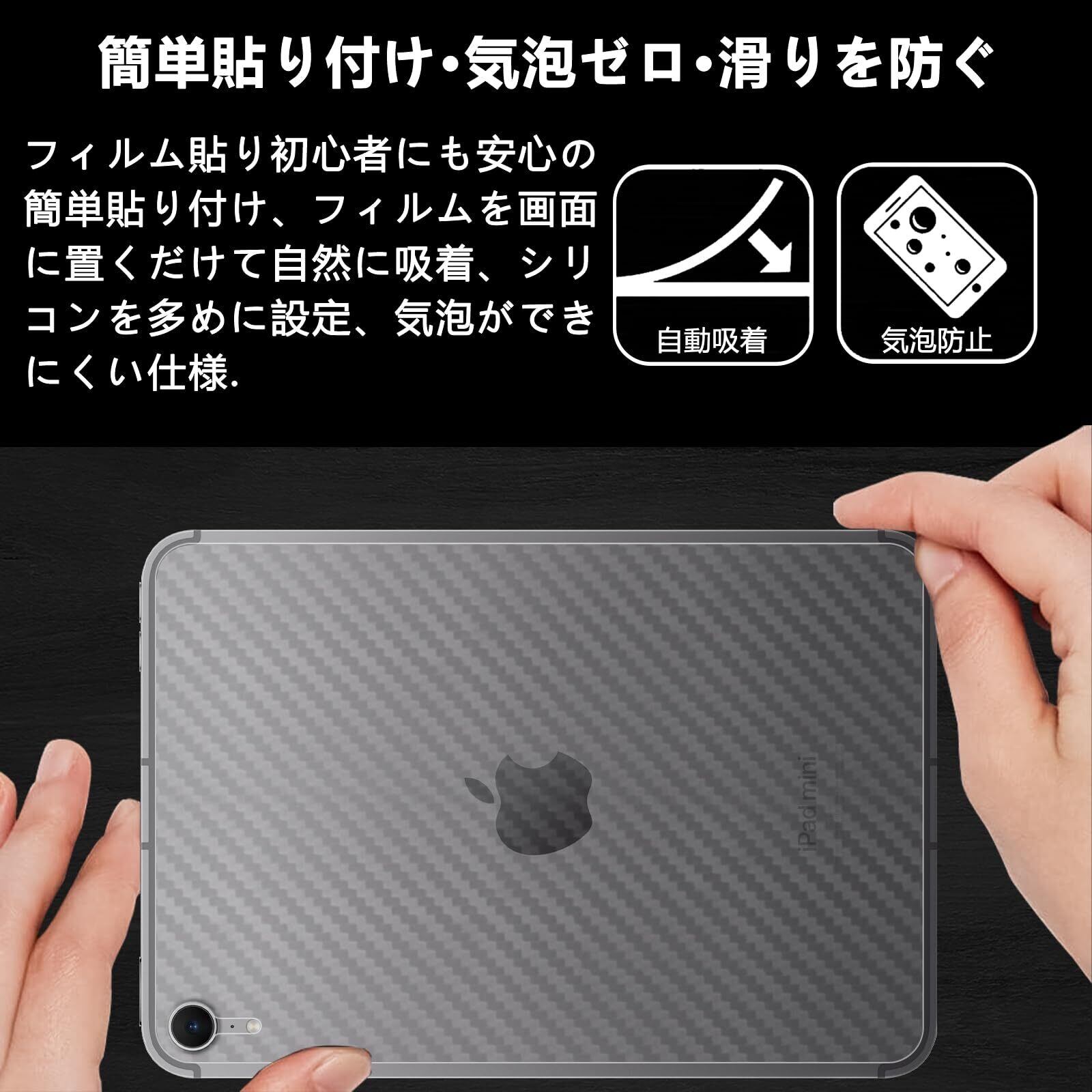 【2022最新】スキンシール 8.3インチ iPad Mini (A17 Pro) 2024 第7世代 / iPad Mini 6 2021 第6世代 用 背面フィルム 【2枚セット】モデル: A2993 A2995 A2567 A2568 炭素繊維素材 透明・マット保護シール 指紋防止 撥水撥油 気泡ゼロ 背面 フィルム ケース カバー 簡単取り付け アイパッド ミニ7 / 6 対応