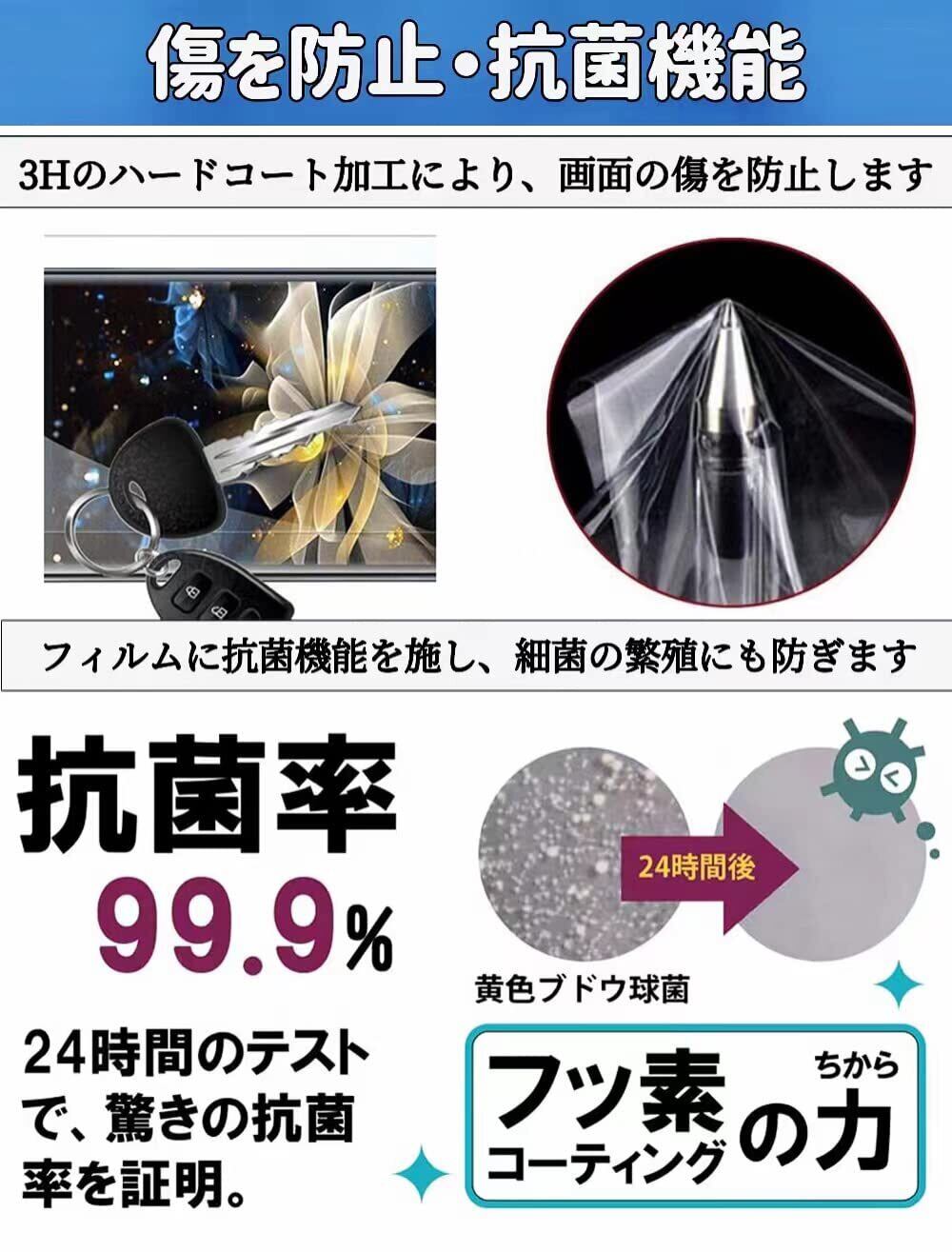 反射低減 :画面のチラつきを抑えるアンチグレア加工により光の映り込みを防ぎ、目に優しく見やすい画面を実現し、目への負担を軽減します。抗菌性 :抗菌加工により、フィルム表面の雑菌の増殖を抑えることができます。