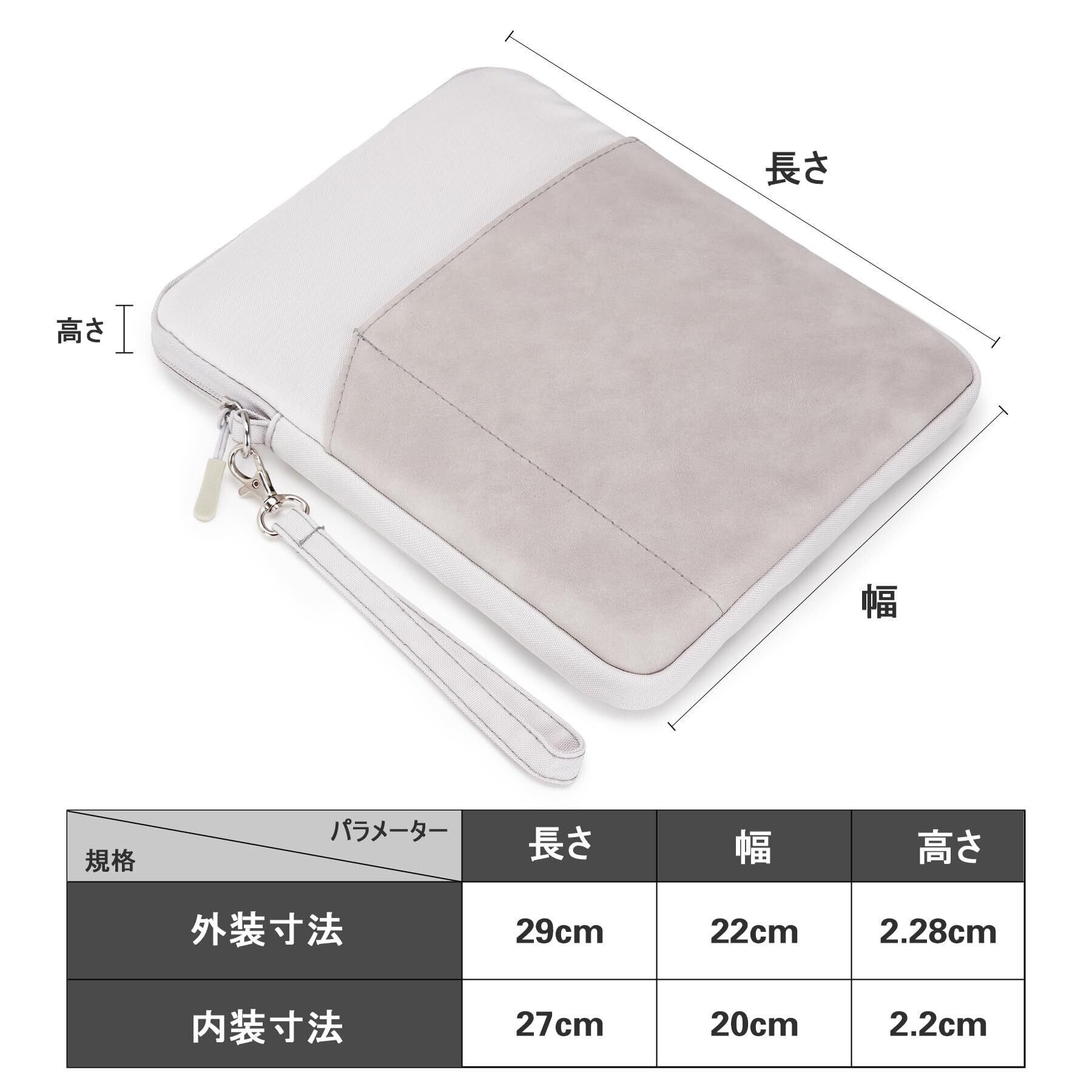 ノートPCバッグの内寸:33×24×2cm。様々な機種に対応しており、例えば:MacBook Air A2681 2022、MacBook Air 2021-2018(モデル:M1/A2337・A2179・A1932)MacBook Pro 2022-2016(モデル:M2/A2686・M1/A2338・A2251・A2289・A2159・A1989・A1706・A1708)にピッタリ対応、12.9 iPad Pro 6/5/4/3/2/1世代、12.3-13 Surface Pro X/9/8/7+/7/6/5/4/3/2/1、12.4 Surface Laptop Go、NEC LAVIE N11、富士通 FMV UHシリーズ 2018年から/Loox、Let's note SV、Dell Inspiron 13 5320、Asus Zenbook 13 OLEDなどの機種に対応、ご購入の際に、機種とサイズを予めご確認ください。