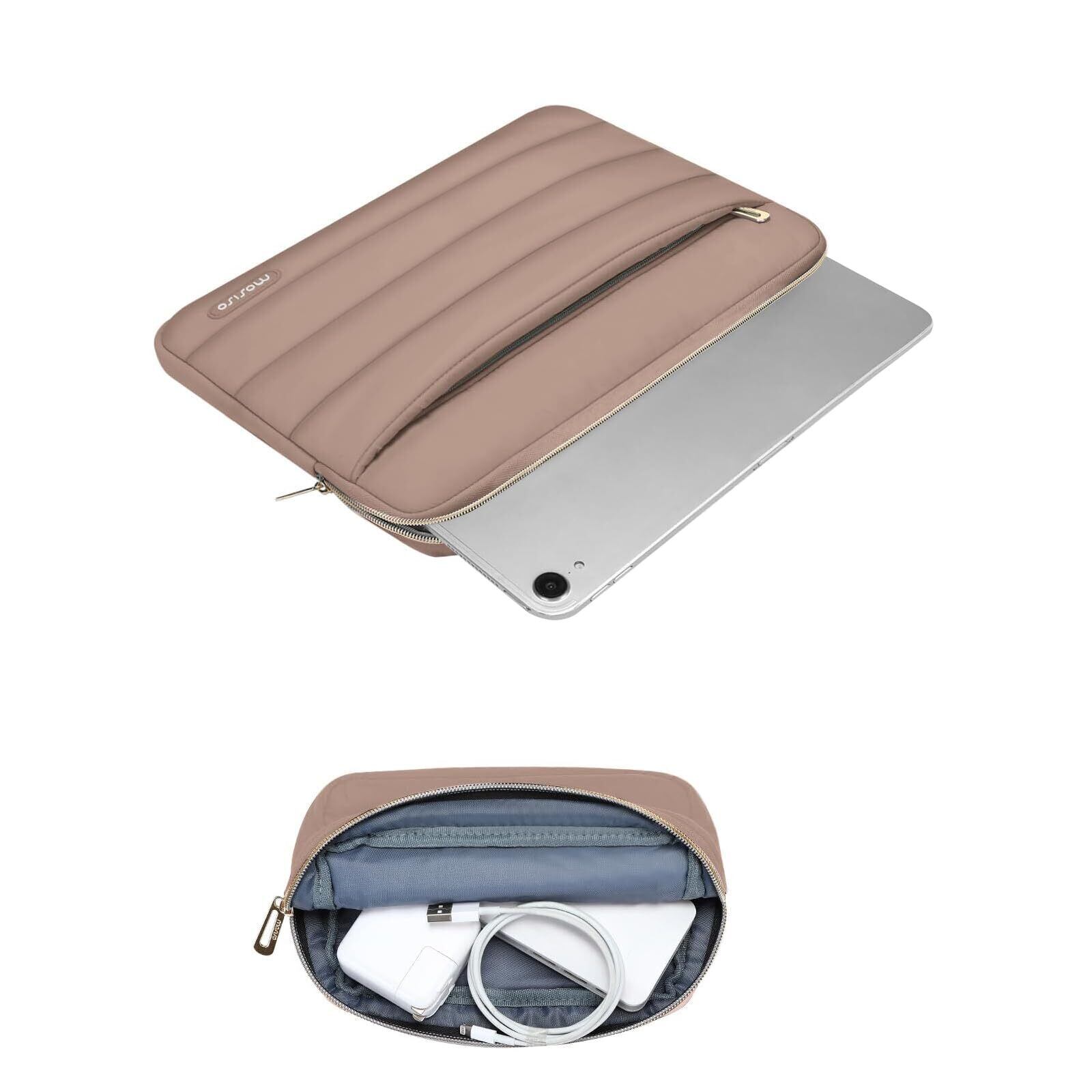MOSISO ふわふわなタブレットスリーブケース、対応機種 11インチ iPad Pro M4/Air M2 2024、小さなケース付き ポリエステル 横型バッグ(ブラウン)