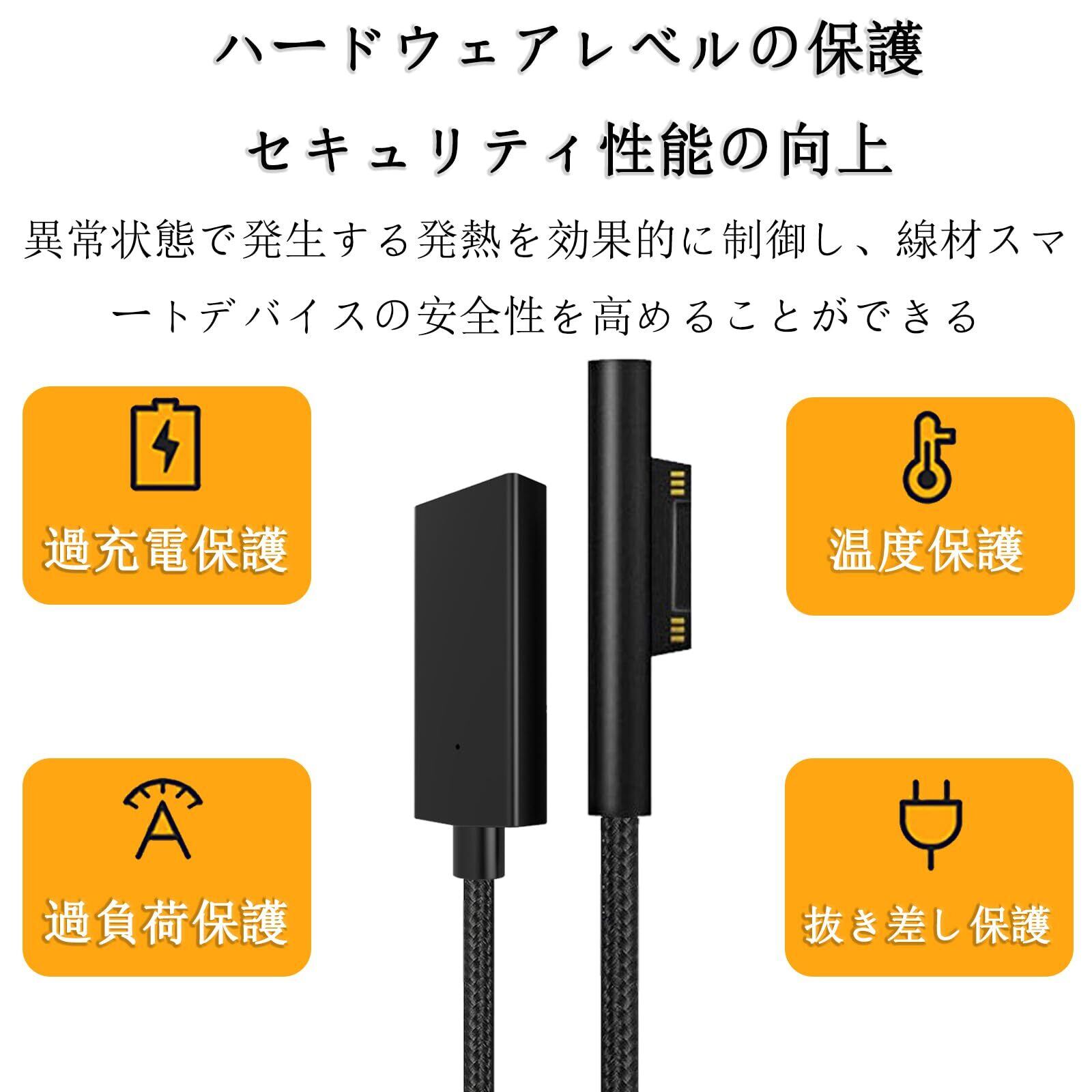 【急速充電】PD急速充電チップを採用しており、最大3A高速充電に対応できます充電効率を向上させます プラグアンドプレイが高速になり、充電時間を節約できますケーブルの長さは、寝室、オフィス、またはどこにでも接続するのに十分ですご。注意:45W以上の電力を使用し、PDプロトコルUSB-C充電器の充電をサポートし、USB-C to USB-Cデータケーブルと組み合わせて使用してください。USB-A to USB-Cケーブルはサポートされていません。データ転送やHDMIビデオ出力はできず、規格に合った充電器を使用しないと、このsurface充電ケーブルは使用できません。