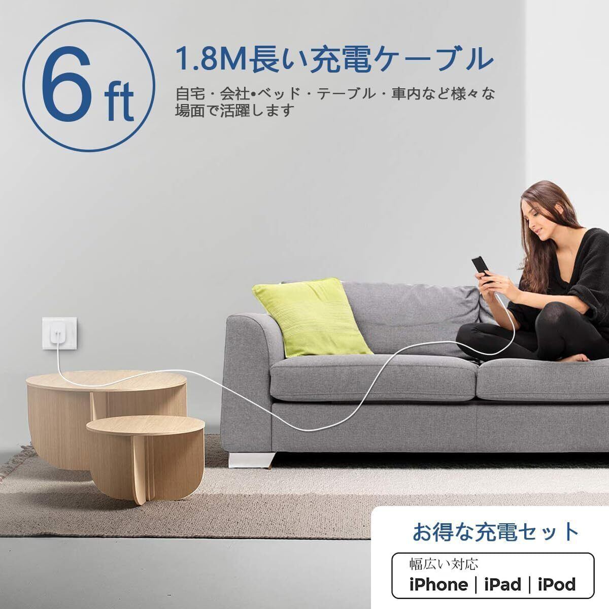 【iPad 充電器&充電ケーブル】20W PD USB Type C 電源供給きゅうそく充電器プラグ、PD 充電アダプター 3.0 急速充電、USB-C ポートは最大20Wの出力電力を提供し、通常の USB 充電器よりも 3 倍高速です。iPad 充電の場合、わずか 30 分で最大 50% まで充電できます。最大 3A で、効率的に作業できます