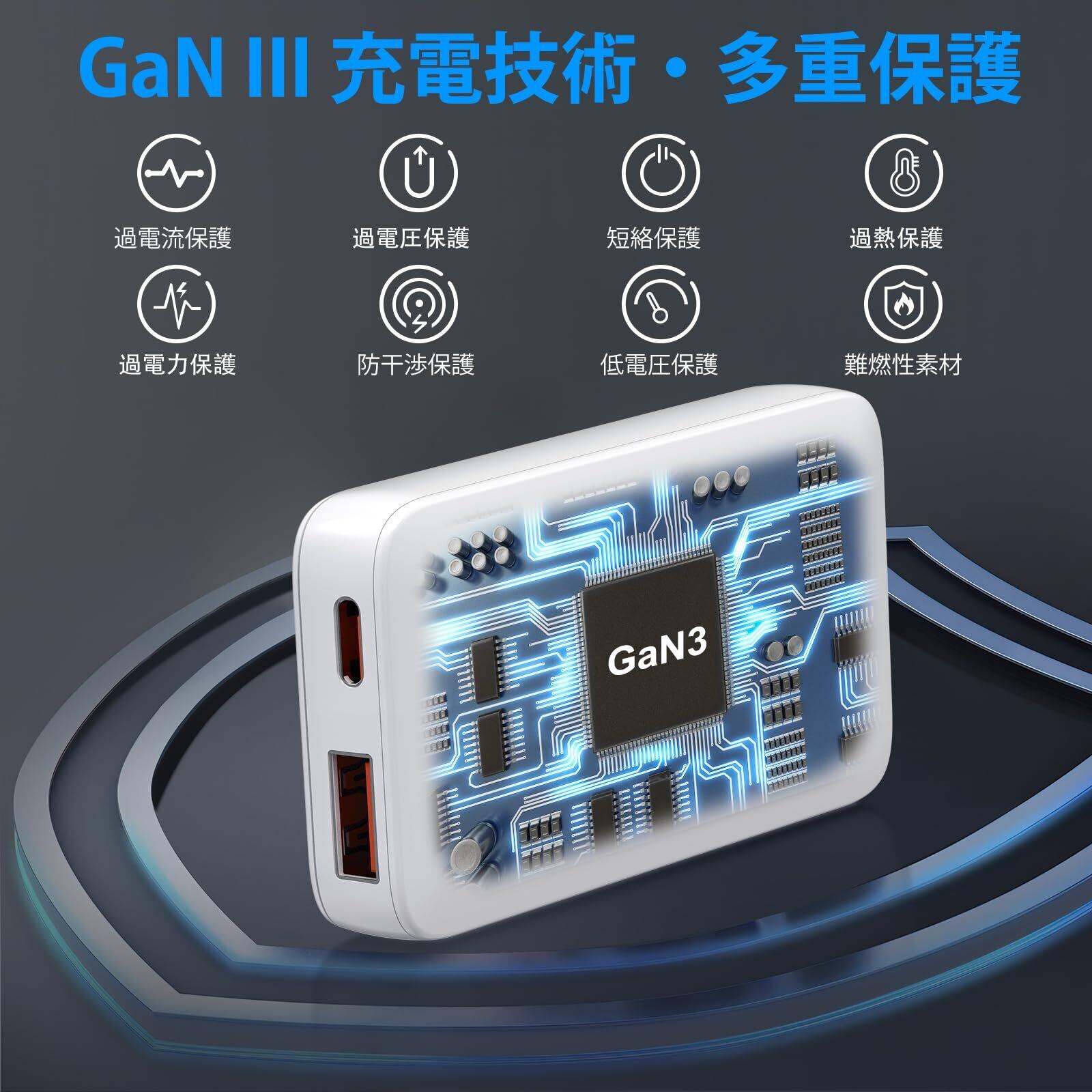 【超薄型折畳式デザイン】充電器本体は8.2*4.4*1.5cm僅か82g、超薄くて小さくてコンパクトなデザイン、プラグは折り畳み式、収納しやすいです、荷物と混乱を減らし、スペースを与える。特に外出、出張、旅行に便利です。USB-AとUSB-Cが揃い、1台の充電器だけでパソコン、スマホ、タブレット、イヤホンなど様々な電子設備に充電可能です。100〜240ボルトの広範囲の電圧に向いて、世界中に旅を立ちます。