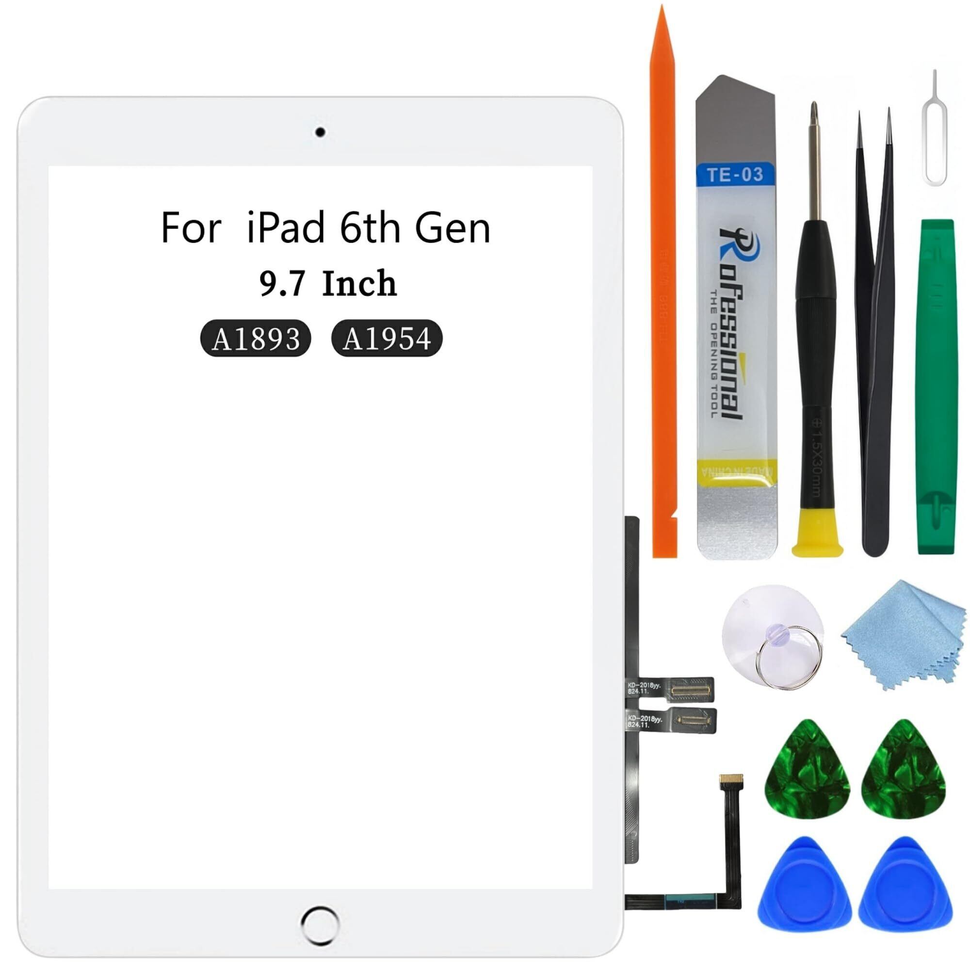 タッチパネル交換用 9.7インチ 2018 iPad 第6世代(A1893 A1954)ガラスタッチデジタイザー 画面交換修理用、ホームボタン付き、取り付け済み接着剤、ツール修理キット(ホワイト)