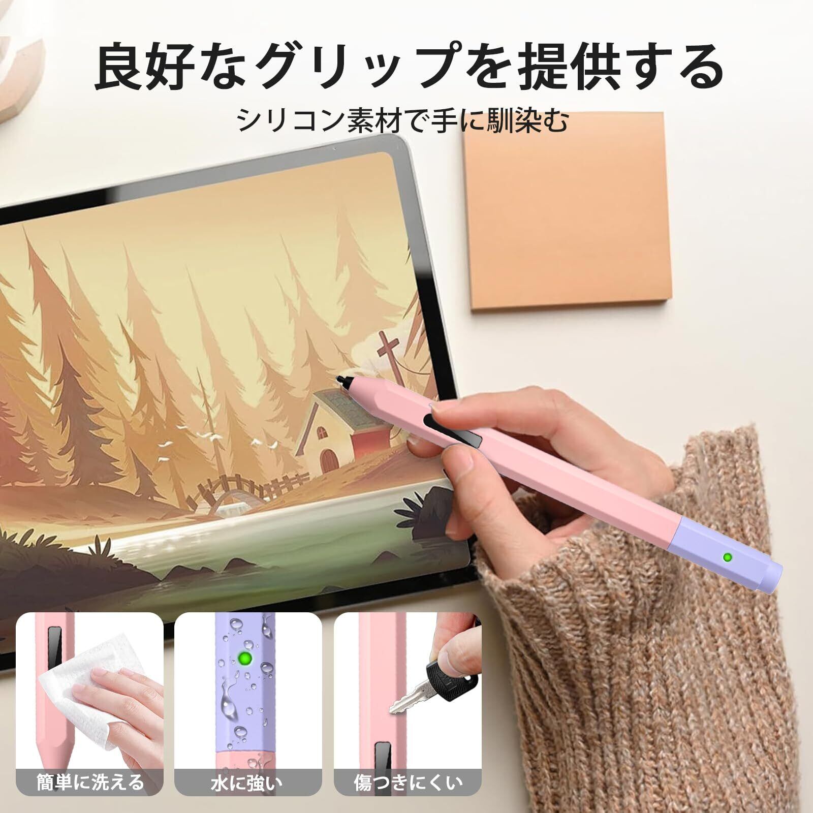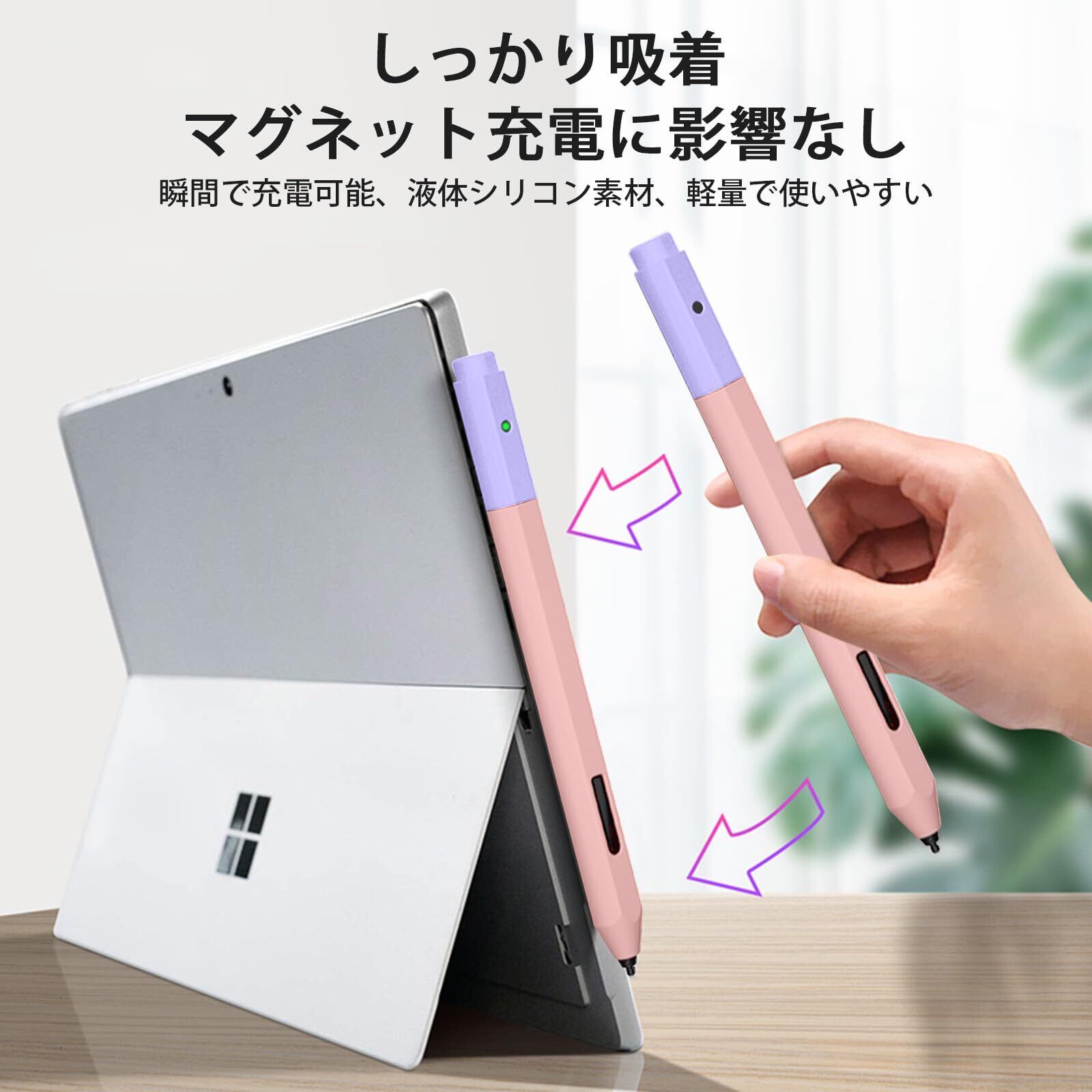 【新着商品】MILPROX Microsoft Surface ペン対応カバー 保護カバー シリコン 軽量 ソフト マグネット充電可能 2キャップ付き 防汚防滑 防摔 タッチペンカバー(ピンク+ラベンダー パープルキャップ)