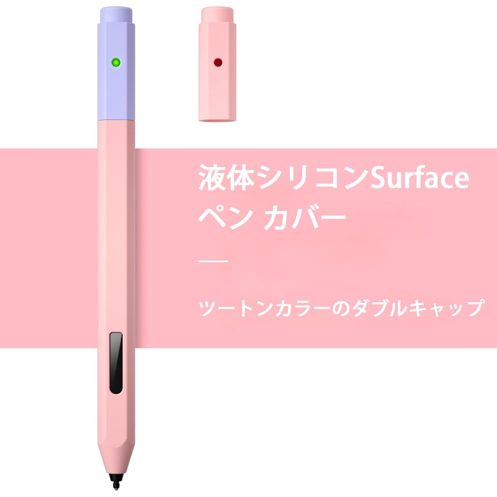 MILPROX Microsoft Surface ペン対応カバー 保護カバー シリコン 軽量 ソフト マグネット充電可能 2キャップ付き 防汚防滑 防摔 タッチペンカバー(ピンク+ラベンダー パープルキャップ)