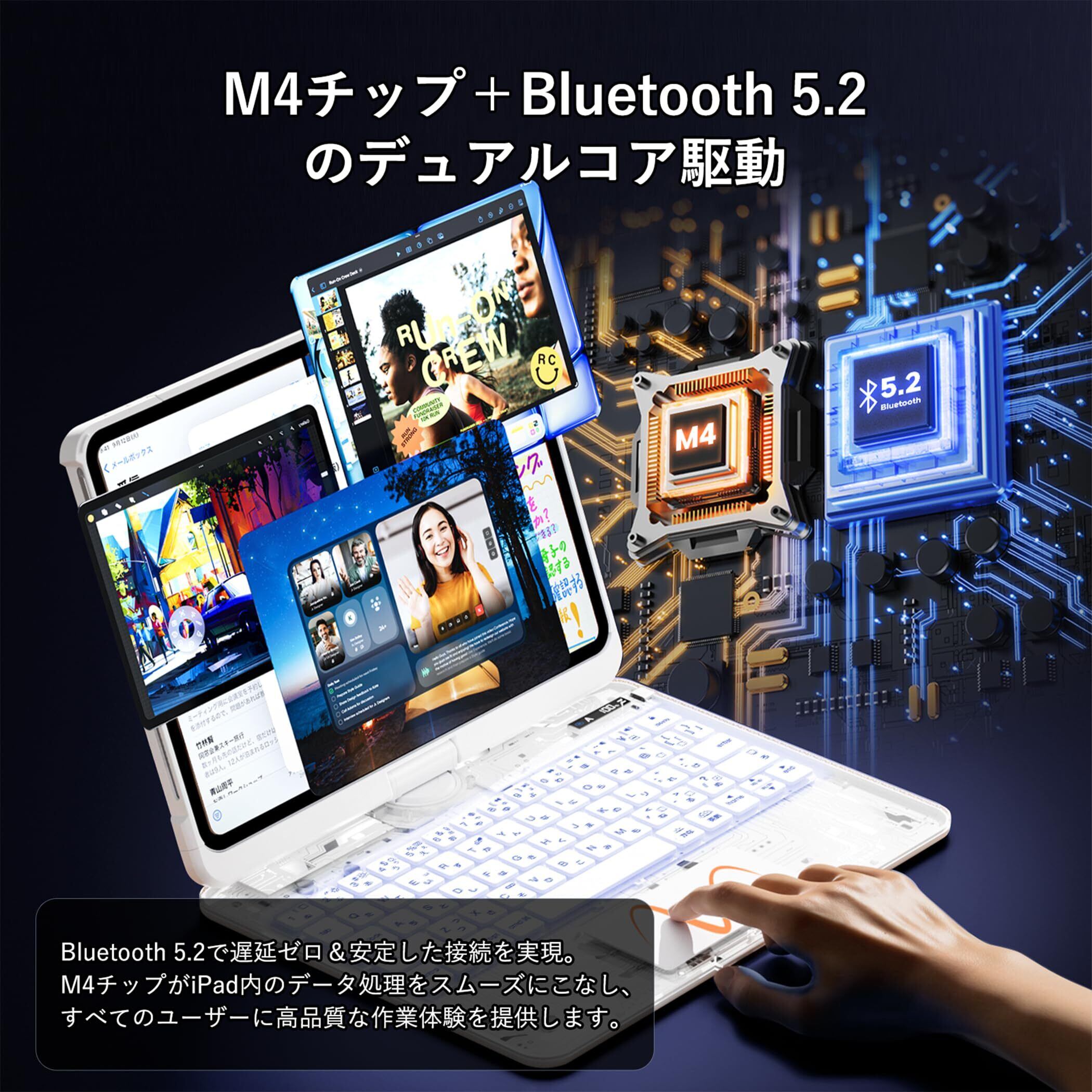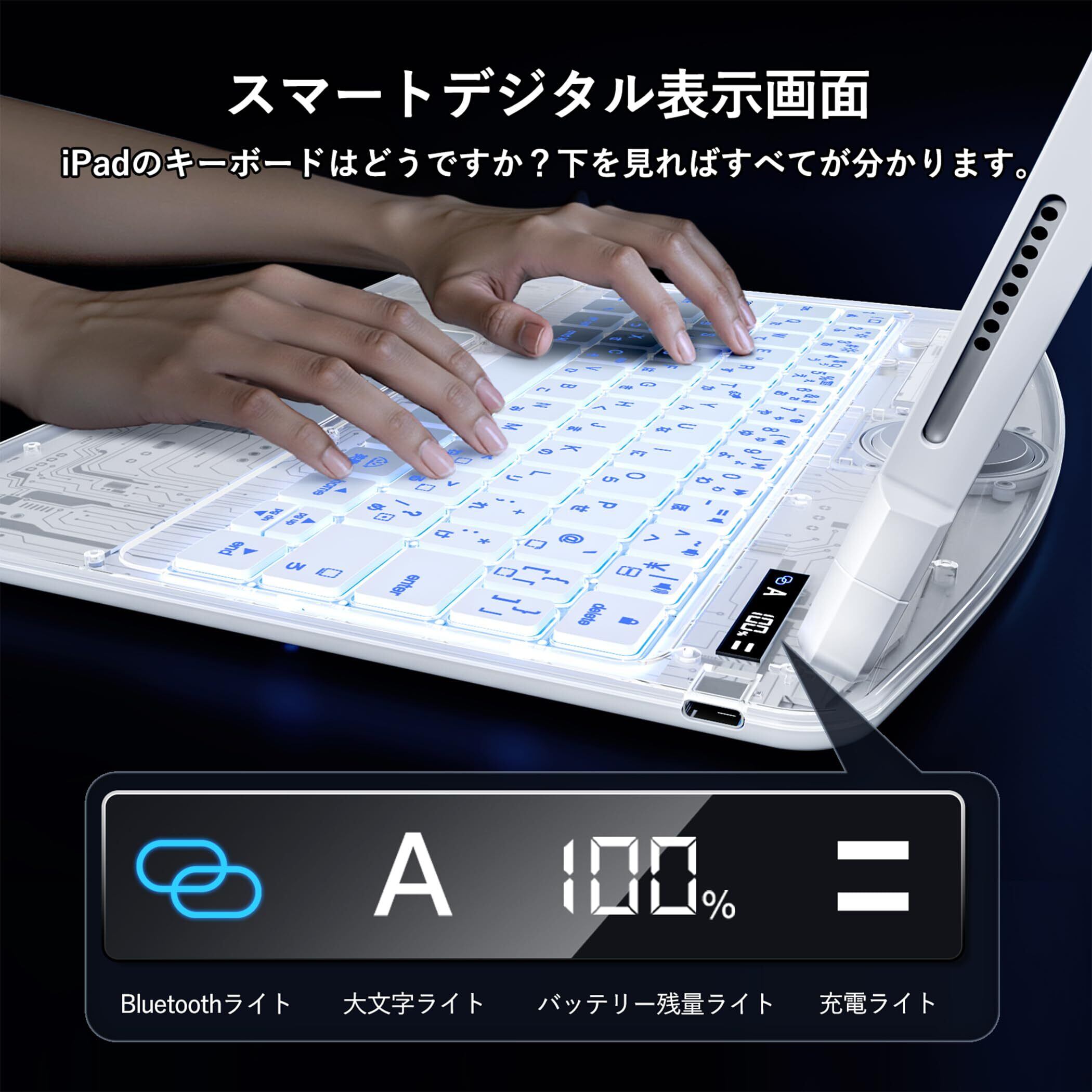 ipad 第10世代/第11世代(A16)10.9/11インチ 対応【360度回転式】ipad キーボードケース アイパッド キーボード付きケース 超高精度トラックパッド搭載・Bluetooth5.3・7色バックライト・JIS日本語配列 薄型 Magic Keyboard風カバー 透明ホフイト(iPad 10.9/11インチ 第10/11世代 A16·2025年発売)
