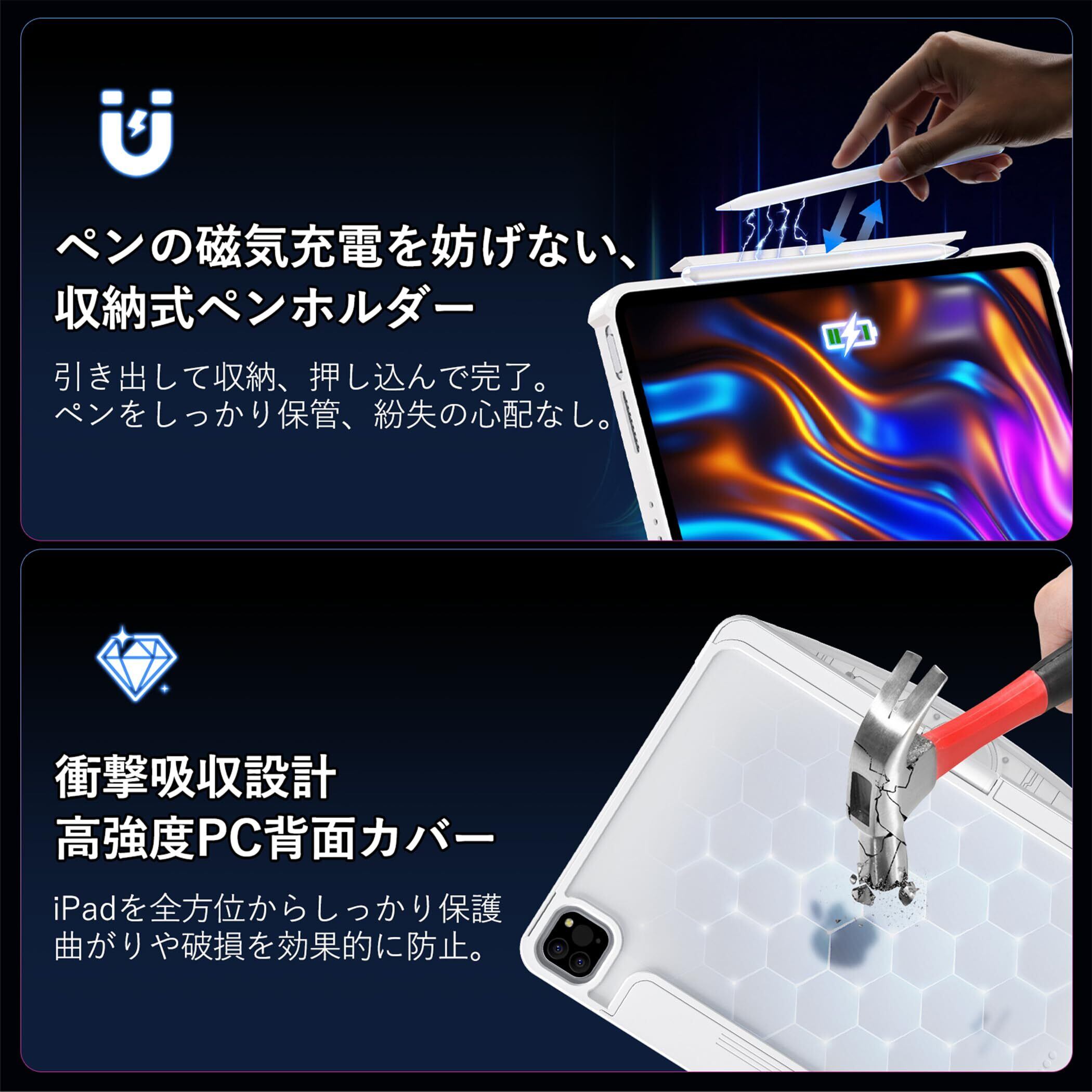 【特価セール】ipad 第10世代/第11世代(A16)10.9/11インチ 対応【360度回転式】ipad キーボードケース アイパッド キーボード付きケース 超高精度トラックパッド搭載・Bluetooth5.3・7色バックライト・JIS日本語配列 薄型 Magic Keyboard風カバー 透明ホフイト(iPad 10.9/11インチ 第10/11世代 A16·2025年発売)
