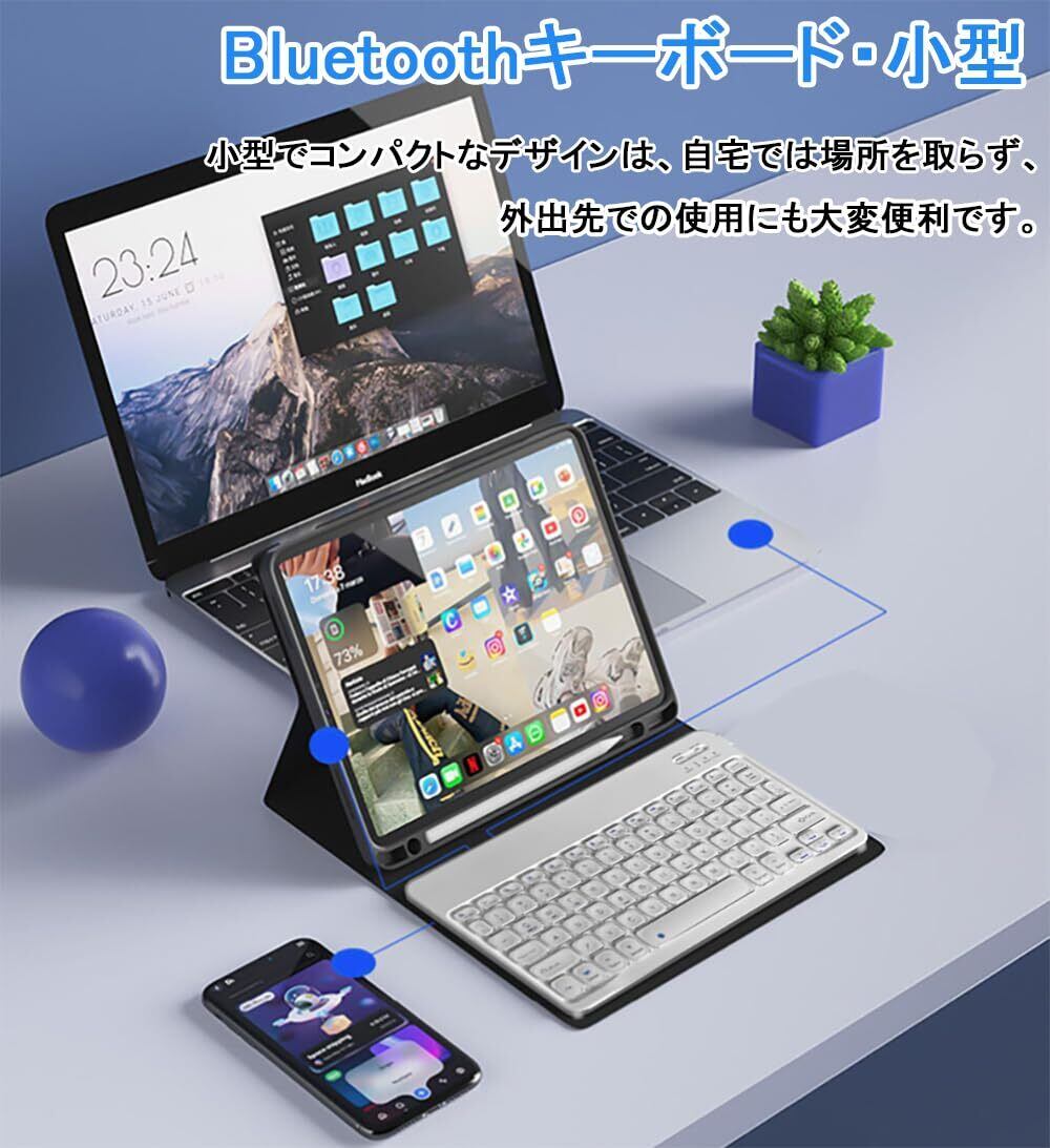 【タブレット キーボード ipad】このタブレット用キーボードはBluetooth接続で、10mの範囲内で動作します。Windows/ios/androidシステムに対応し、Bluetooth機能を持つタブレット、iPad、ノートパソコン、iphone、スマホに対応します。