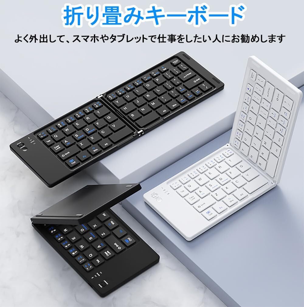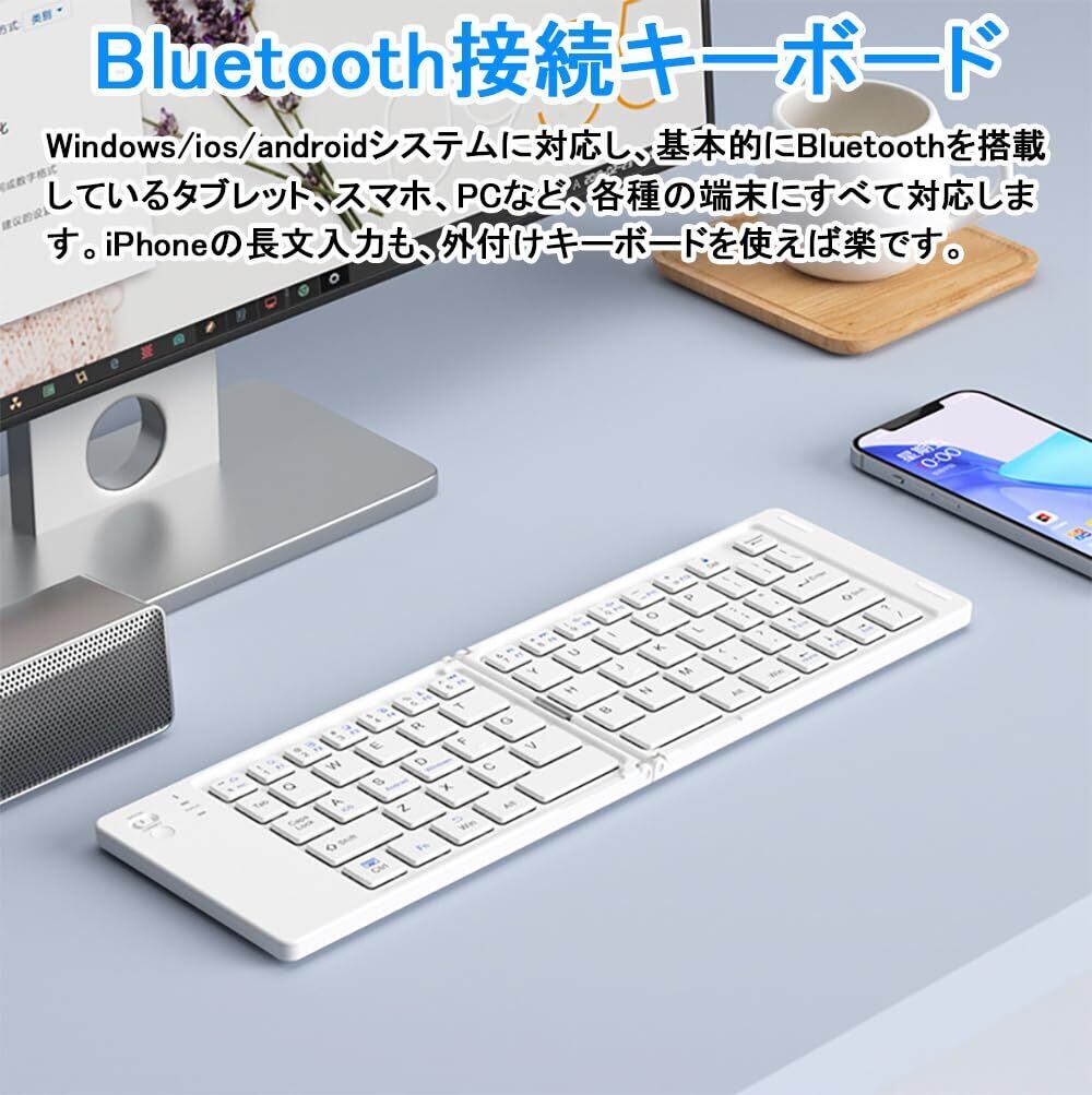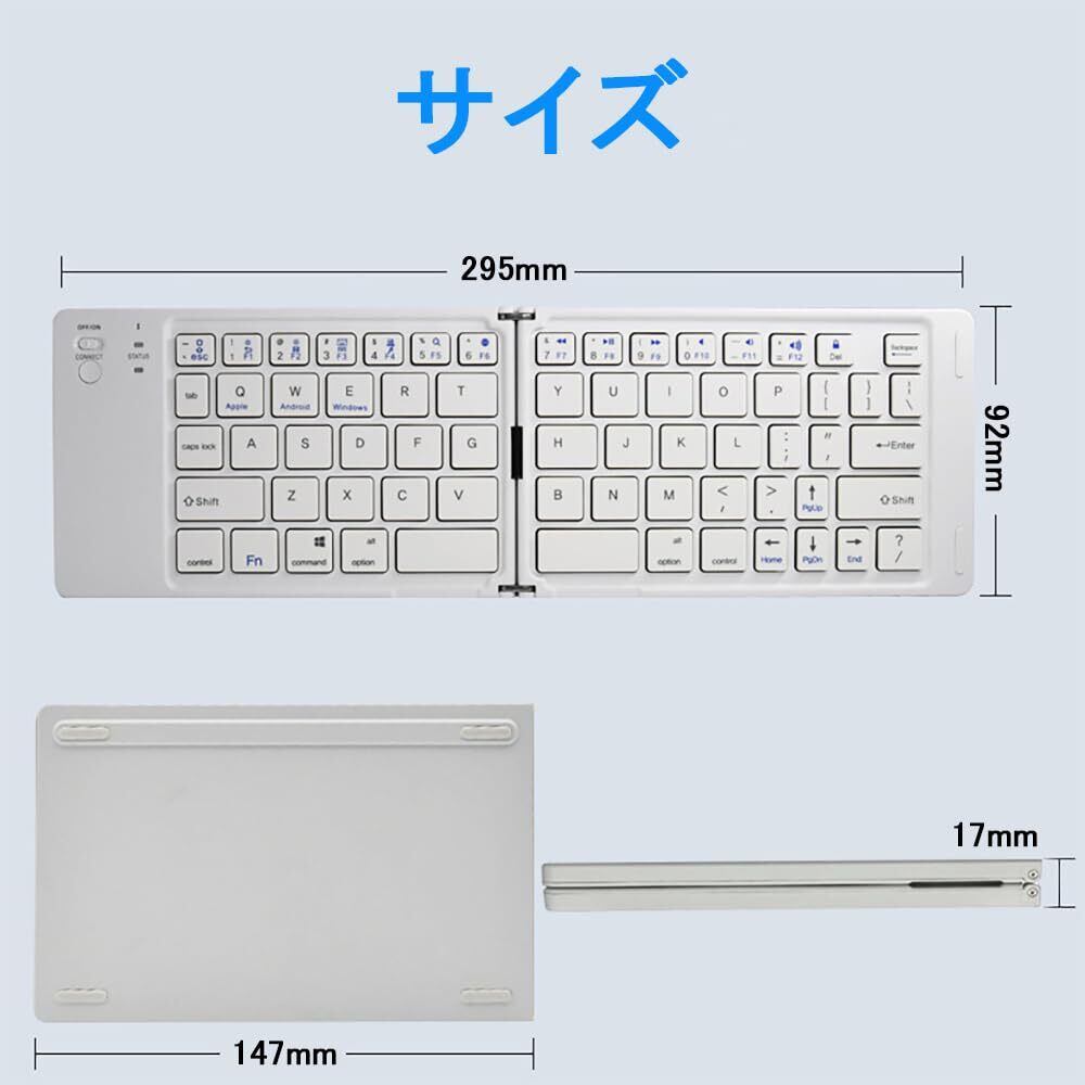 Bluetoothキーボード折りたたみ 超軽量 スマホスタンド付き Type-C充電式 折り畳み式 ブルートゥース ipad タブレット スマホ用 iphone コンパクト 小型 携帯便利 us配列(白)