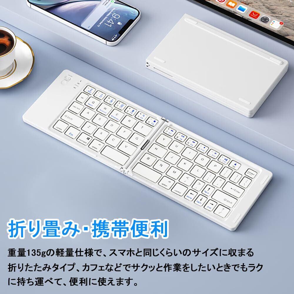 【2022最新】Bluetoothキーボード折りたたみ 超軽量 スマホスタンド付き Type-C充電式 折り畳み式 ブルートゥース ipad タブレット スマホ用 iphone コンパクト 小型 携帯便利 us配列(白)