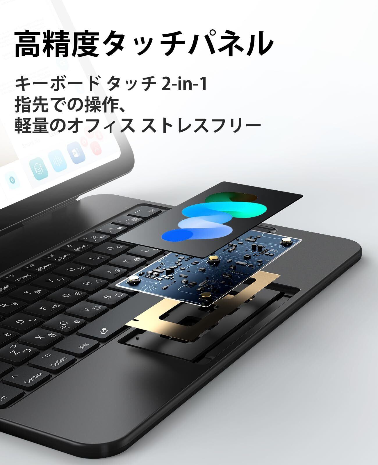 【感度が高く正確なトラックパッド】 マルチタッチジェスチャー認識で、iPadに非常に便利で、ウェブを閲覧し、ページをスライドし、アプリを切り替えることができます。タッチパッド用に特別に設計された抗タッチデザインで、タイピング中にトラックパッドに触れてカーソルが乱れる心配はありません。カバーを開閉すると、iPad 10thは即座にインテリジェントなウェイクアップ/スリープ機能に入ります。どこでも手軽に持ち運べる超薄型デザインです。