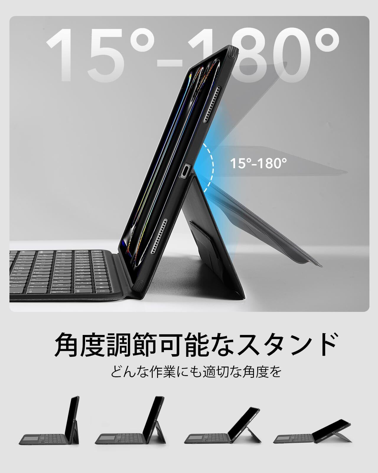 【数量限定】ESR Ascend iPad Pro 11インチ (M5/M4, 2025/2024) トラックパッド付きキーボードケース バックライトキー付きマグネット着脱式キーボード 角度調節可能横置きスタンド ブラック