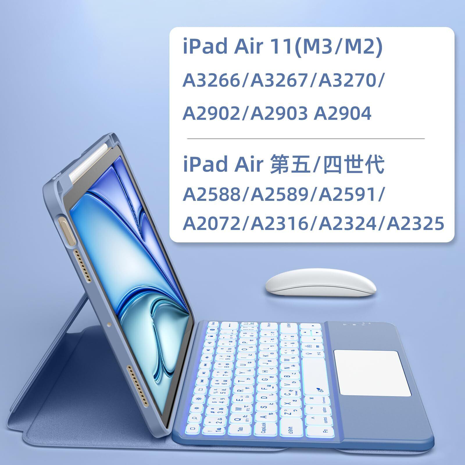 【対応機種】このipad キーボード ケースは対応iPad Air 11インチ(2025 M3/2024 M2)A2902/A2903/A2904/A3266/A3267/A3270、対応iPad Air 第5/4世代(2022/2020)(モデル番号:A2072/A2316/A2324/A2325)しています。ご注文前にアイパッド裏面のモデルを確認ください。ご注意:本製品は本体iPadとApple用 pencilを含めません。ご注意:この製品の重量は630gです