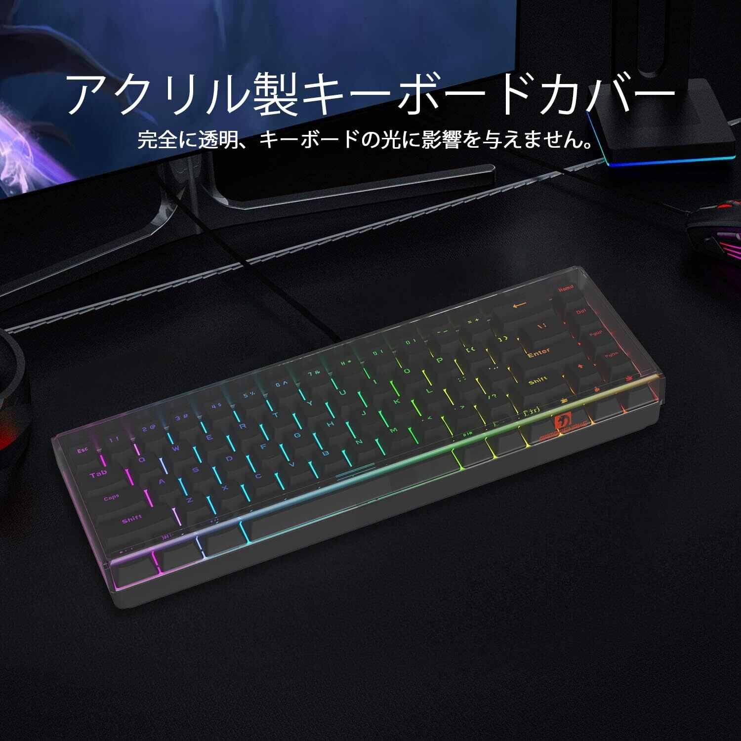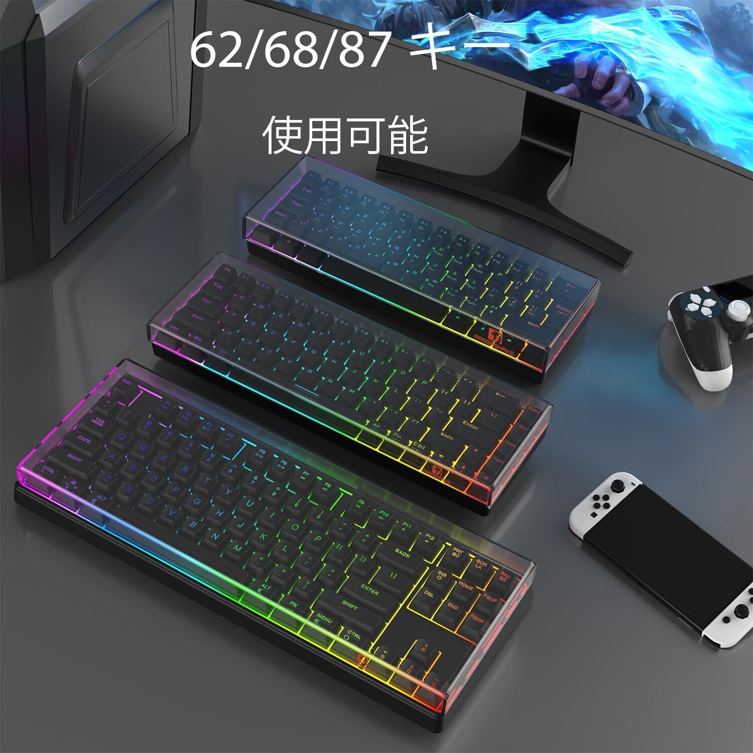 【数量限定】MAMBASNAKE キーボードカバー 防塵効果 アクリル製 68キー60%ミニキーボード/ゲーミングキーボードに適用 透明 クリア 高温圧力の曲げ技術 猫対策 収纳ケース(31.2*10.2*2.3cm)