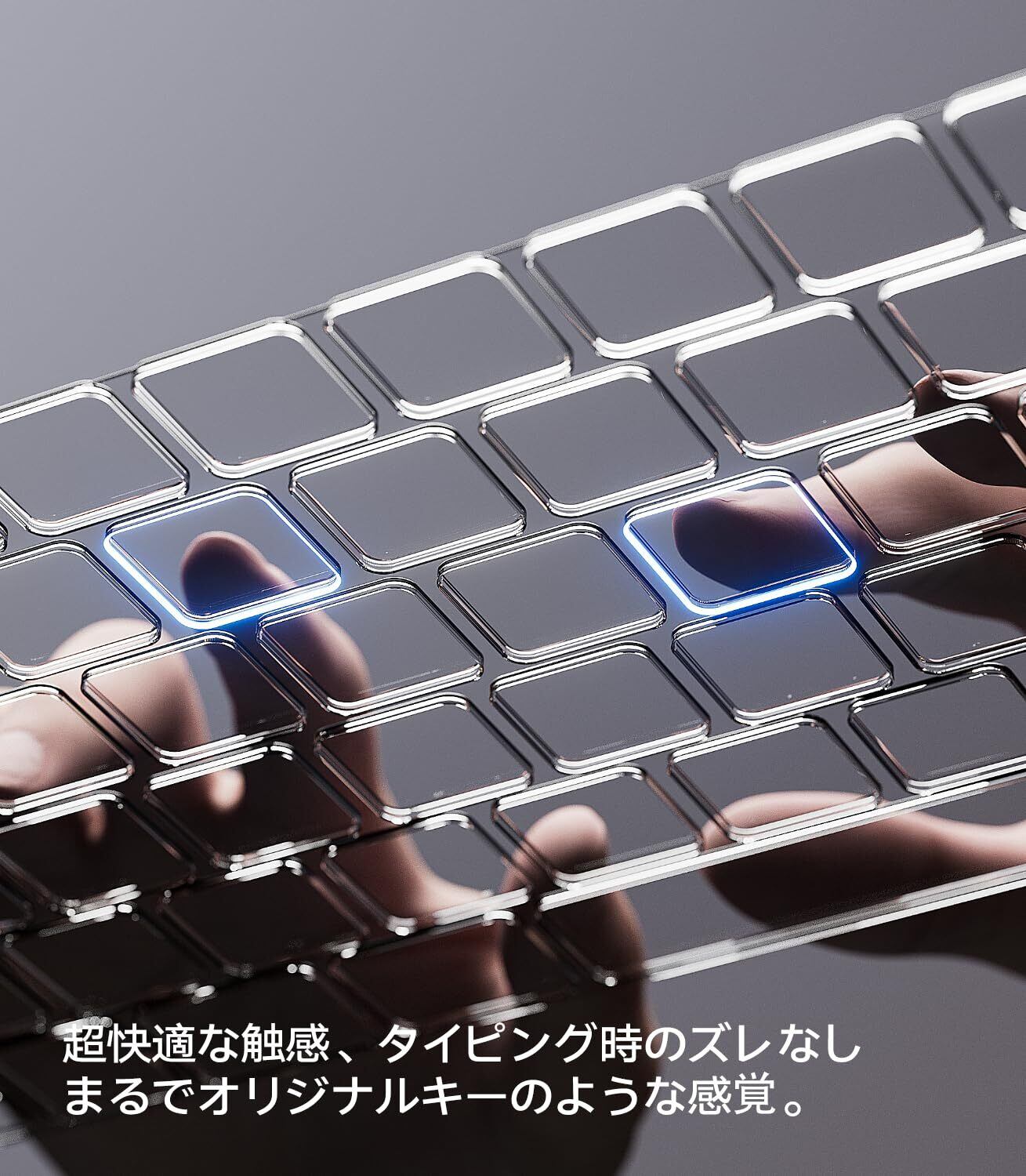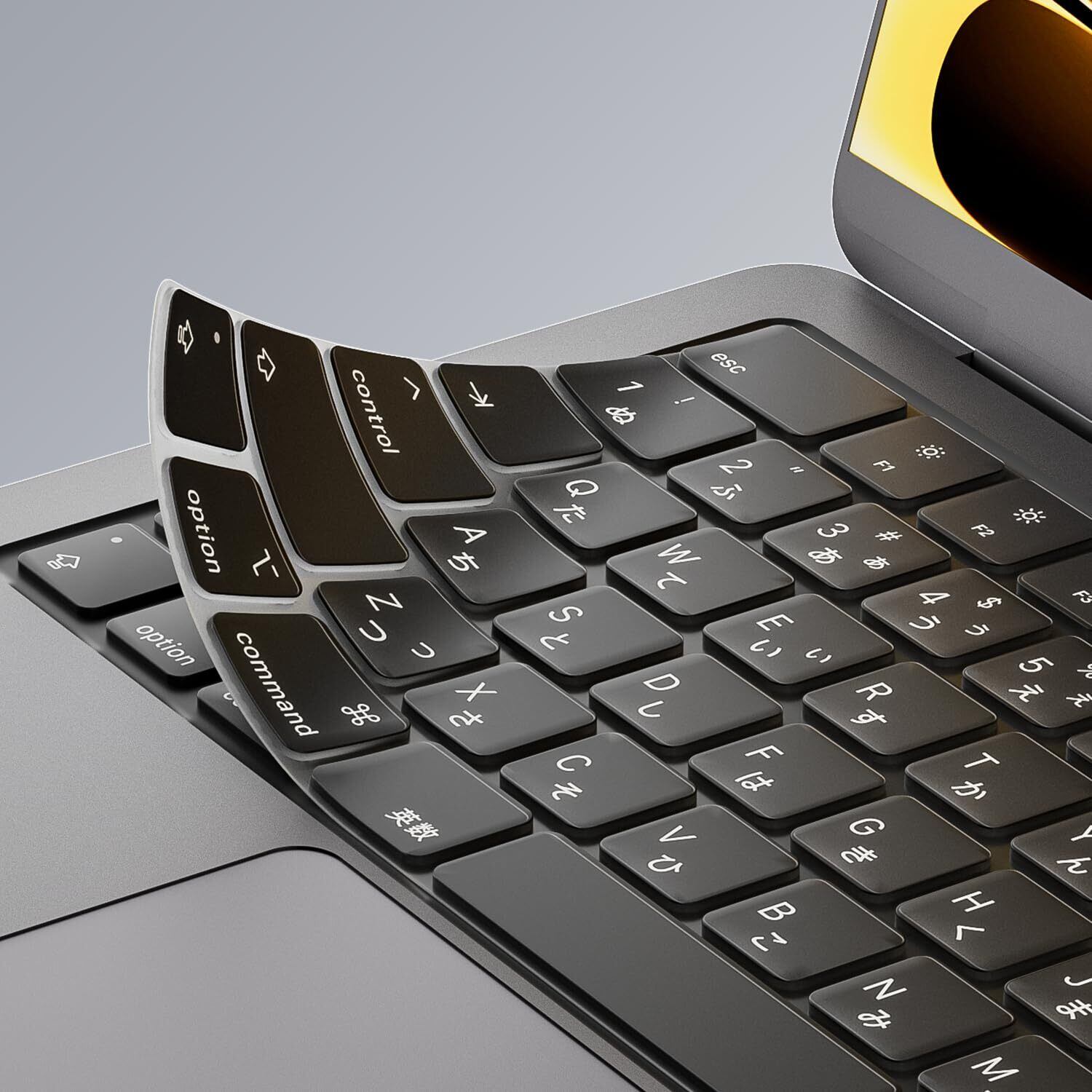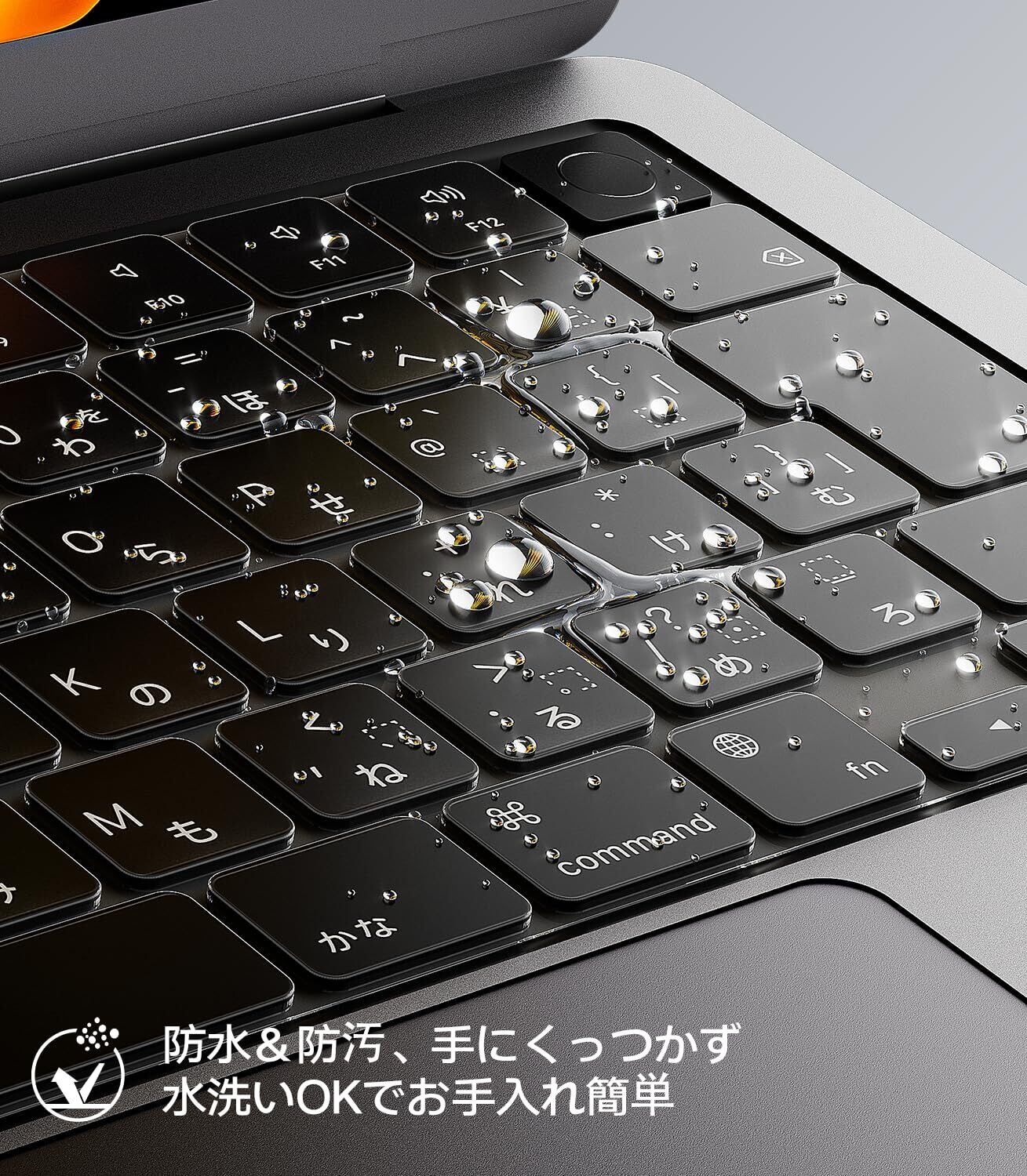 【フィット感抜群・ずれにくい設計】 キーボード全体を包み込む一体成形構造で、使用中にズレたり浮いたりしません。ソフトタッチのシリコンが指への負担を軽減し、長時間の作業も快適です。