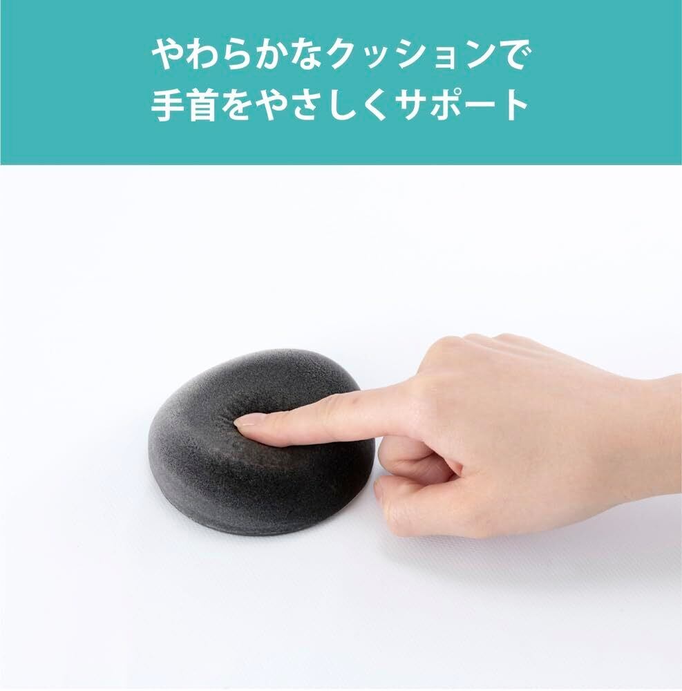 クッションが手首にやさしくフィット。荷重を吸収・分散し、程よい高さ設計で負担を軽減。長時間のPC操作をサポートします。