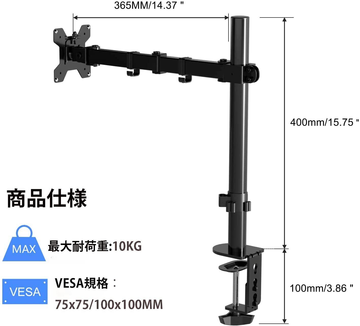 【2022最新】Pholiten モニターアーム PC モニター アーム 多軸液晶ディスプレイ アーム VESA 75*75/100*100MM 17~27インチ10KG以内のモニターに対応 MD97421