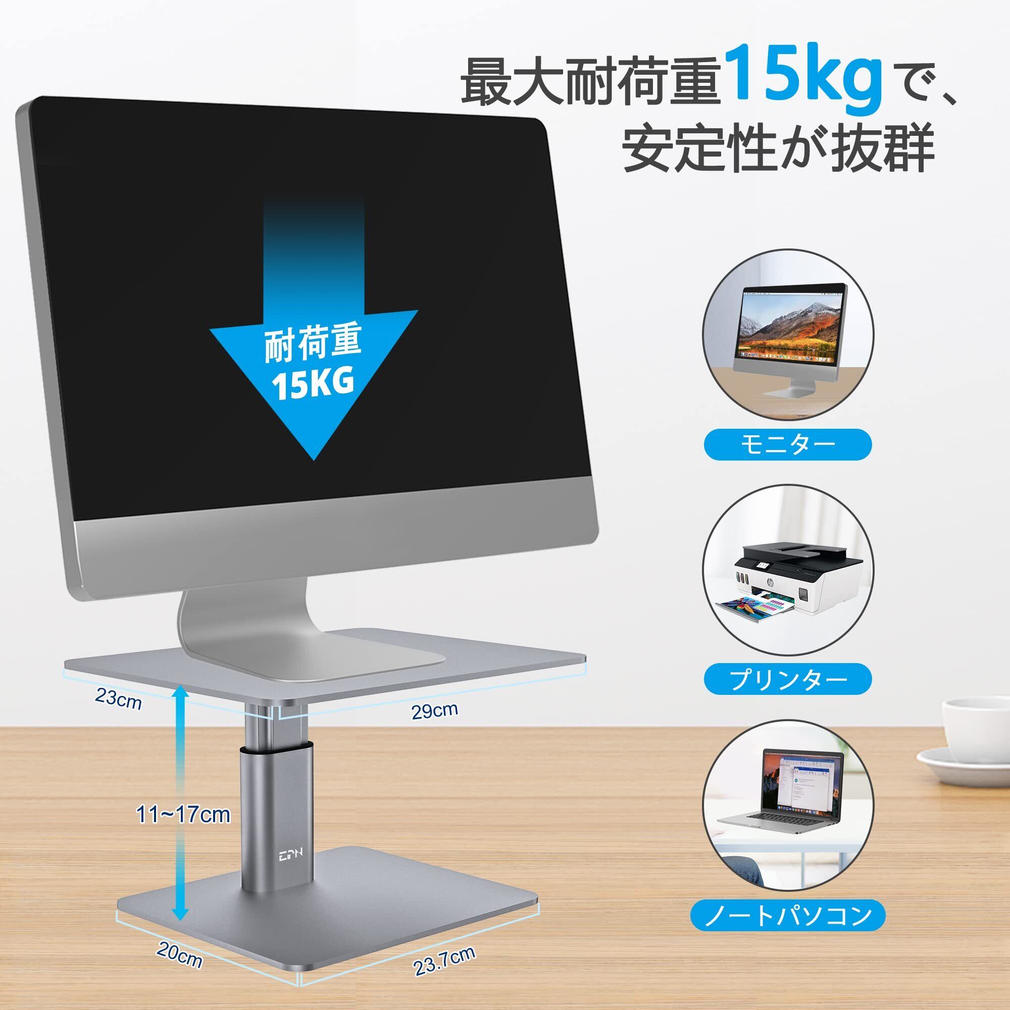 EPN モニタースタンド モニター台 卓上 11cm~17cm無段階高さ調節 耐荷重15kg 金属製 安定 机上台 ディスプレイ台 パソコン台 机上台 キーボード収納 姿勢改善 グレー
