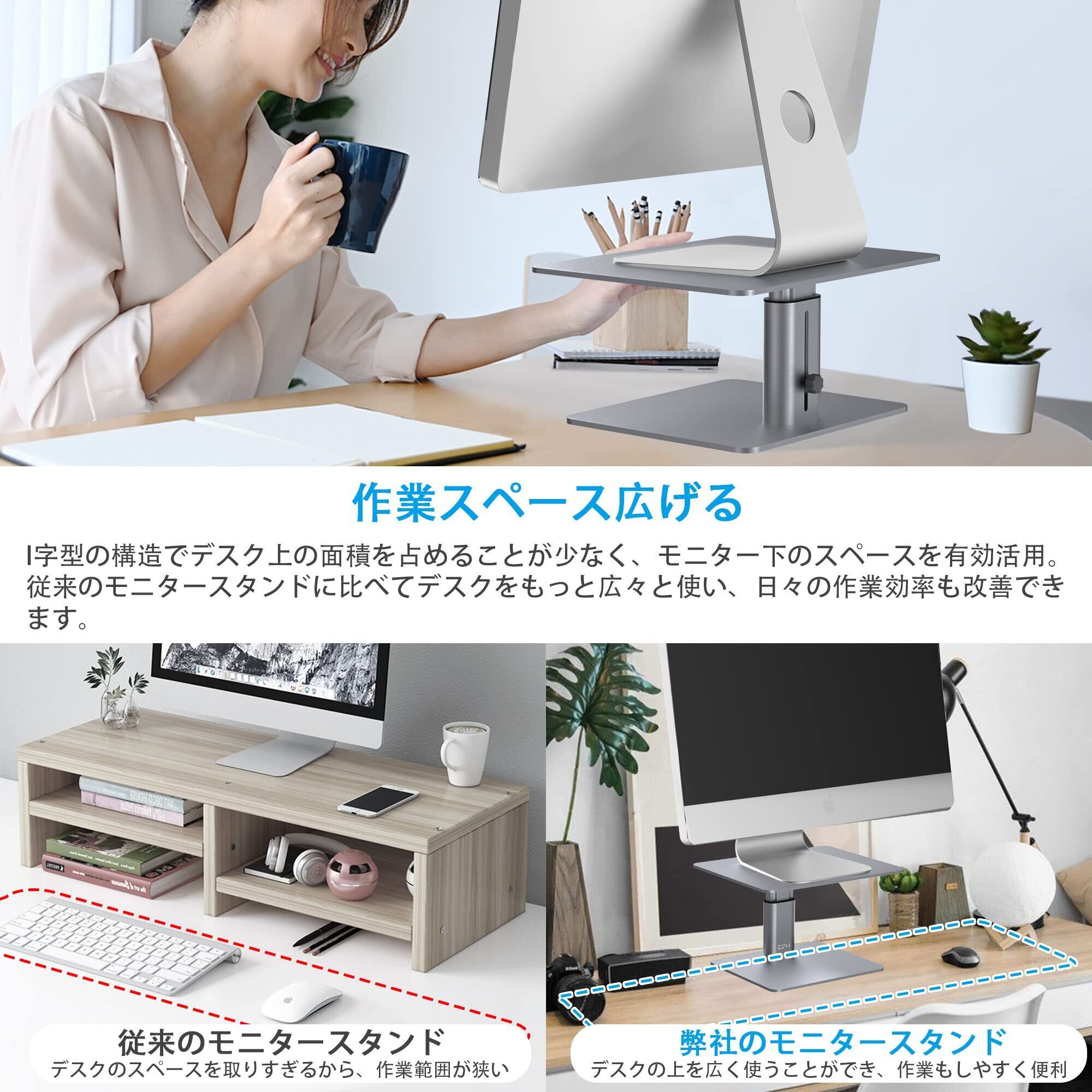 【高さ調節で姿勢改善】:商品サイズ(cm):(天板)幅約29cm×奥行約23cm、(底板)幅約23.7cm×奥行約20cm、高さ11cm~17cmまで調節。モニタースタンドの支柱のネジで高さが11~17cmまで無段階で調節することが可能で、作業しやすい好みの高さに合わせて最適な目線にディスプレイの高さを調整することができます。視線が上がることで猫背などの悪い姿勢が解消され、肩こりや首痛や目の疲労も軽減し、お仕事の効率も改善できます。(ご注意:スペースが足りないことを避ける為に、卓上のスペースをご確認の上でお買い求めください。)