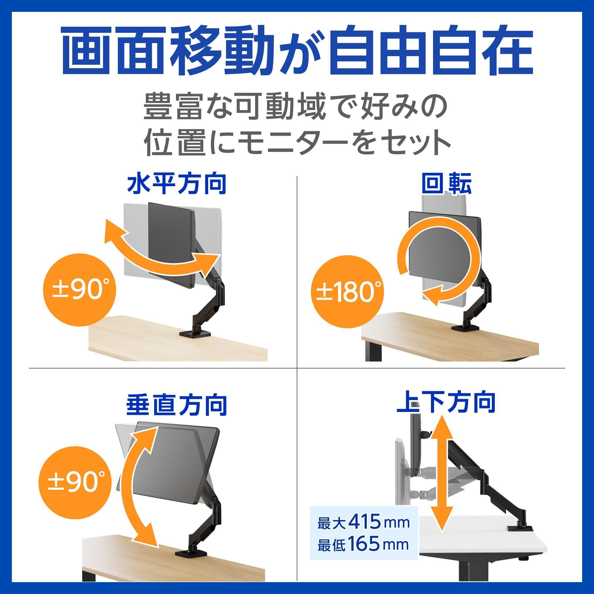 【デスク上のスペースを有効活用!】液晶モニターの台座(スタンド)がなくなって、デスク上すっきり!液晶画面をお好みの位置に設置できるので、作業効率が上がります。テレワークで自宅の書斎に設置したい方にも。