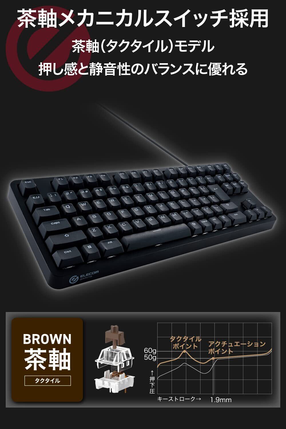 エレコム ゲーミングキーボード 有線 メカ二カル 全キーロールオーバー 日本語配列 テンキーレス 5000万回高耐久スイッチ採用 タクタイル 茶軸 ブラック TK-GK20TBK