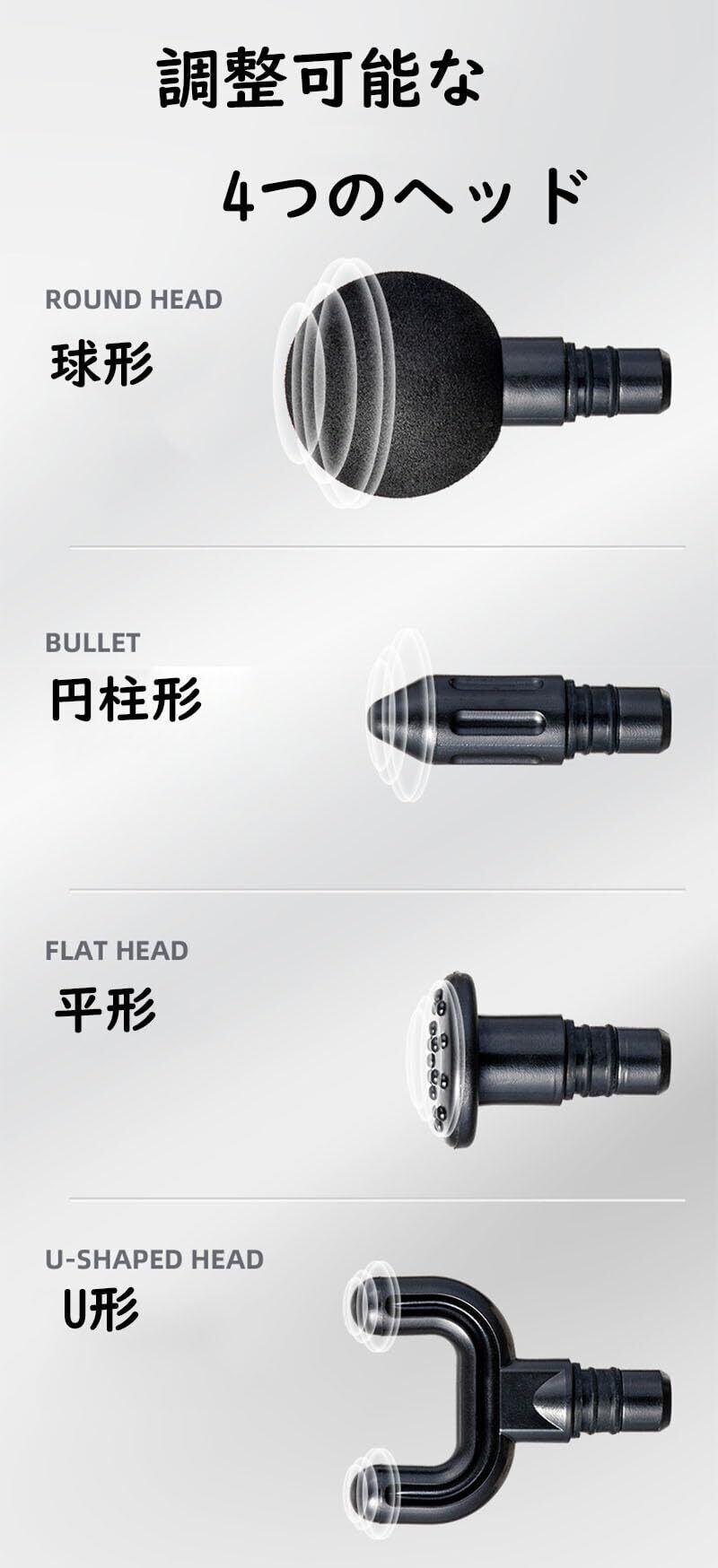 【4種類のヘッド】球形、U形、円柱形、平形4種類のアタッチメントが付属します。状況によっては、交換可能なヘッドが使えます。