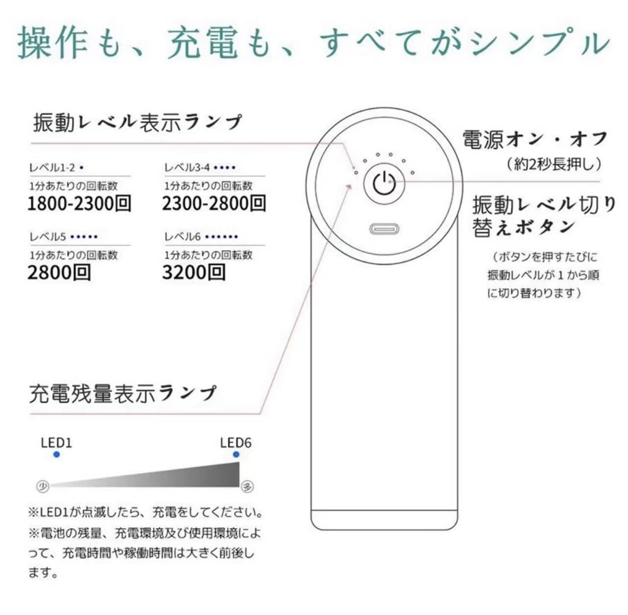 【ワンタッチで操作簡単】1800〜3200回/毎分の振動強度調整機能を搭載し、ワンタッチで回転スピード(6レベル)を切り替えることができます。初心者におすすめします。非常にシンプルで迷うことはありません。
